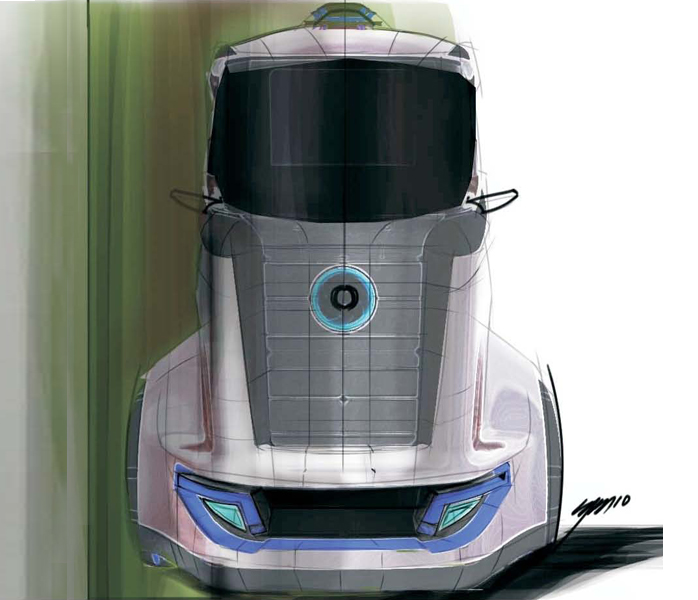 The Windliner is a 3 person narrow cab, powered by battery that allows to travel for about 250 kms at one stretch. I wanted to reflect the simplicity in design. the front end at the stage of design shown here is a narrow cab. The cab is a center driven, for better visibility and handling. Finally the new sets of curves have defined a brand new design language for Ashok Leyland future trucks.