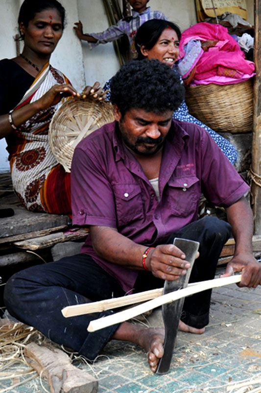 Many families are engaged in practicing bamboo craft. These families have migrated from Nanjangud in Mysore District of Karnataka State and settled in Bangalore from past 45 years. The artisans procure raw material from Belgaum in Karnataka to produce many kinds of bamboo products.