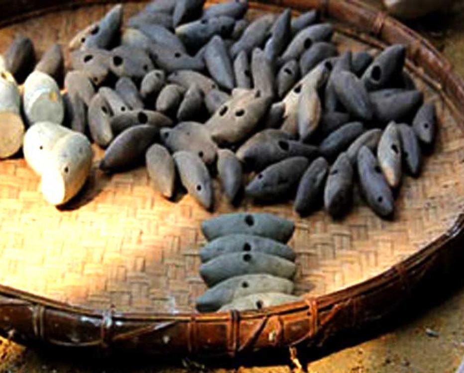 Sutuli is a clay baked wind instrument. This half moon shaped, musical instrument fall under the category of Susira vadya (wind instrument) of Indian musical instruments. An indigenous folk instrument draws inspiration from nature. It emulates the sound of a wild bird-kuli in Assamese or more popularly known as ‘koel’ in Hindi. As dance groups gather in open spaces to celebrate arrival of spring during Rongali bihu, the sound of kuli, as many folk tales and folk songs suggest is the sound most sought amongst natives.