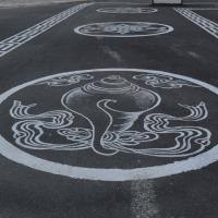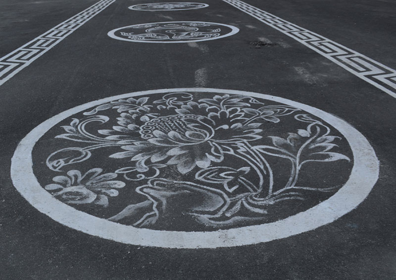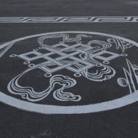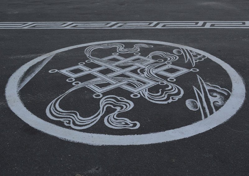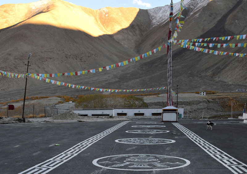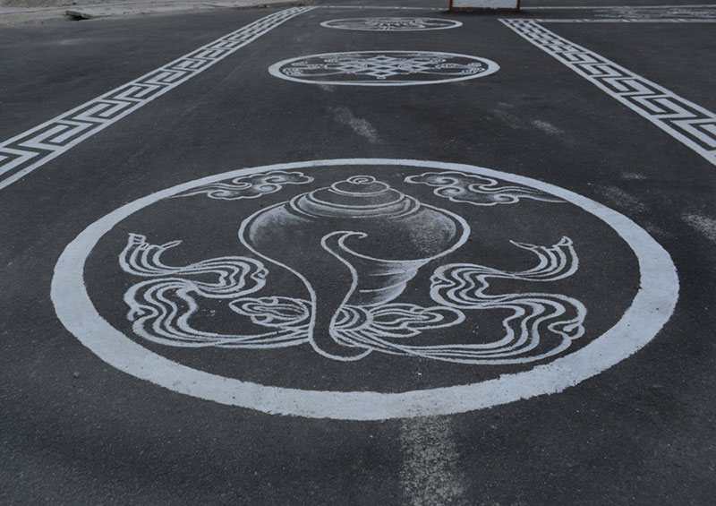 • All these symbols have been painted on the road at the Shachikul Monastery in Nubra Valley, Ladakh.
