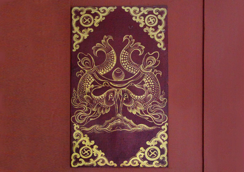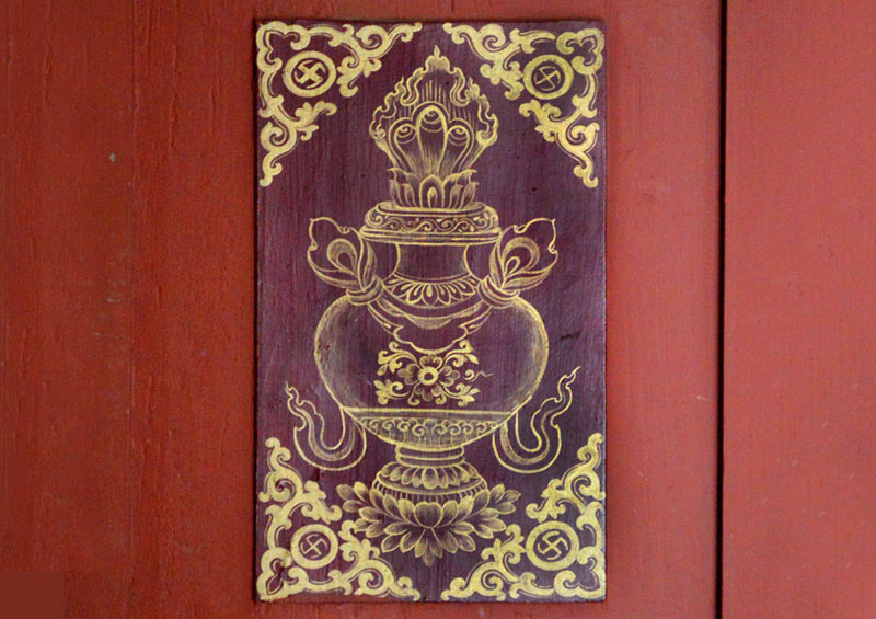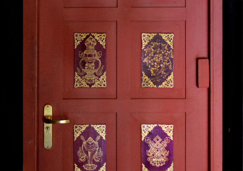 Out of eight, six symbols are painted on a door in the Stok Palace where the royal family of Ladakh resides.