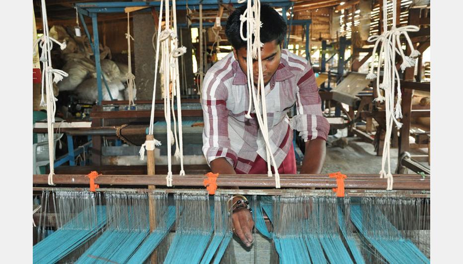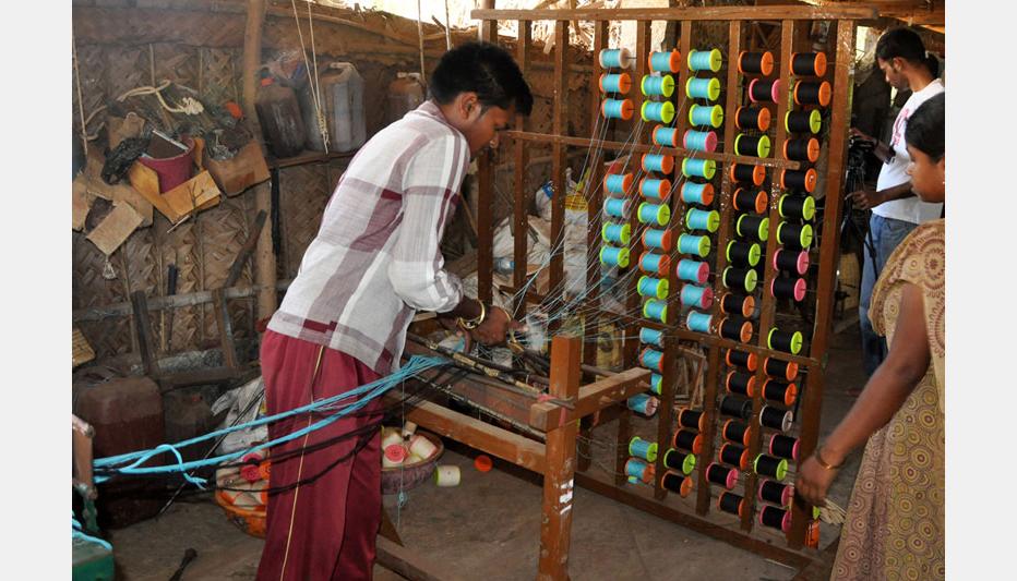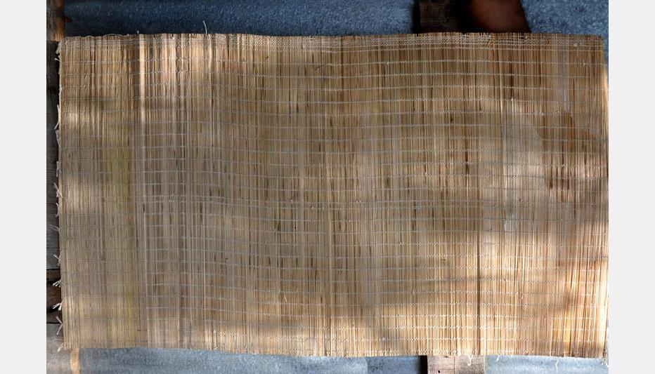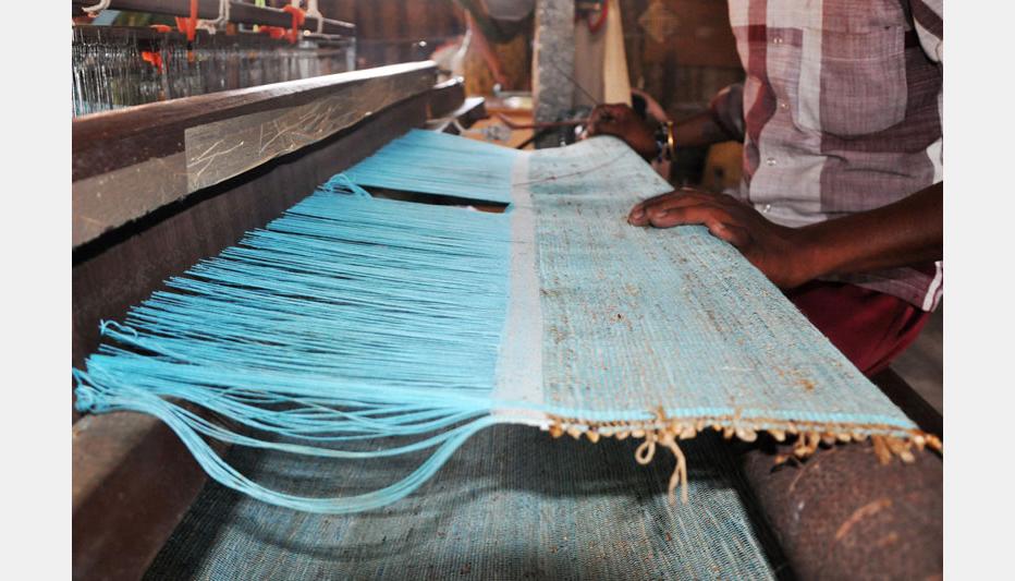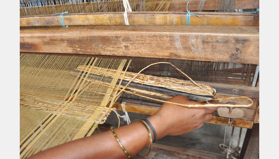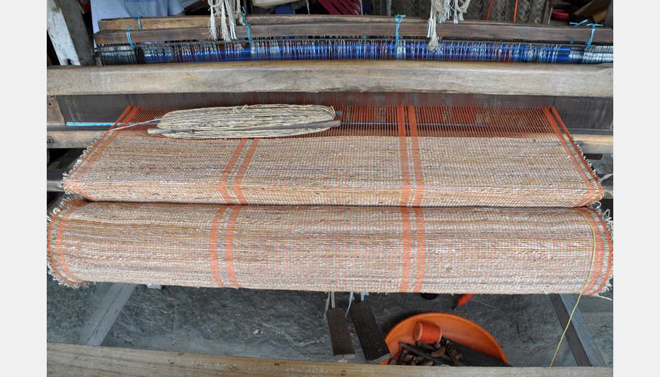 The mat weaving process is similar to other weaving techniques. Weaving is traditionally done in basic pit looms. The type of weaving practiced in Lakkavanahalli is very simple without using any Jacquard machines to create extra designs. The aesthetic look is created by using colorful threads, wool, kora grass and few other natural yarns.