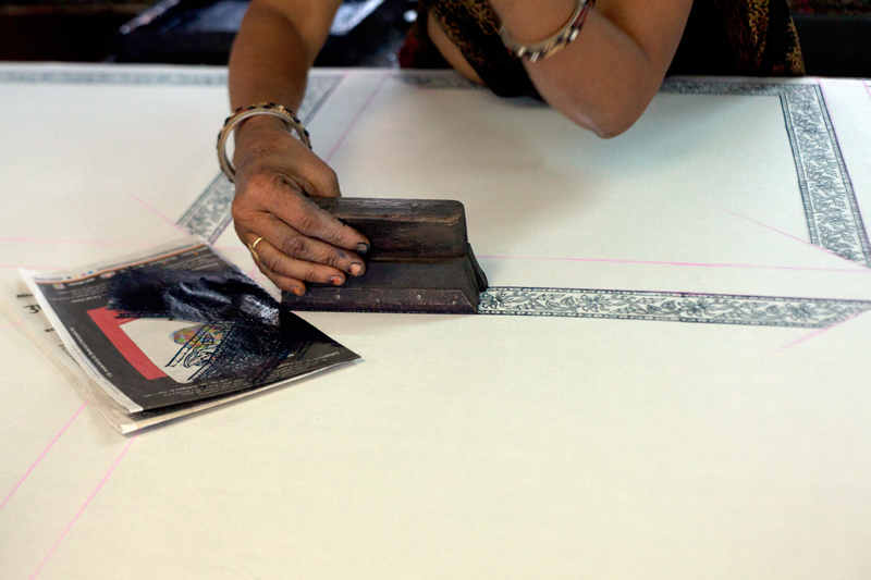 Rajasthan as the hub of craft and culture houses many traditional crafts and among them the most practiced and known craft is hand block printing. The region of Sanganer has emerged as one such centre for the age old craft of hand block printing. Sanganer is a small village situated around 30 km from the walled city of Jaipur and considered to be the most prosperous place in Jaipur. The water of the river Saraswati flowing from Sanganer is considered to be having special quality that brings out the radiance from the natural dyed fabric. The artisans practicing block printing belong to Chhipa community. The block makers mainly make two types of block Wooden Block and Metal Block. Wooden blocks are usually made on teak or seesham wood. The design are first printed on paper and stuck on the block of wood. Artisan, then start carving the wood with steel chisels of different widths and cutting surface. Metal Blocks are used for making intricate patterns and getting high level of clarity in prints. These blocks are made by engraving thin sheets of evenly cut metal strips into the wooden blocks. The metal strips are beaten to make them thin and then strips are cut of even length. The design is drawn on the wooden block and the metal strips are pressed onto the design by gentle hammering. These are costly, time consuming but long lasting. The main raw material is the color used in the printing. Traditionally the artisans used natural colors but today it has been replaced by chemical and artificial colors. The process of printing can be divided into washing, marking, printing, drying and washing again. Traditionally the printing was done for the royal families and motifs are highly stylized. Mainly, motifs are modelled after sunflowers, narcissuses, roses, rosettes, lotuses, nargis, marigold, gulmehendi, javakusum, etc. Fruits like, keri, dhatura, banana, dates, grapes and pomegranate are also developed. Apart from this bel, betel leaf, animals like parrot, fish, camel, elephant etc are also taken as models to create motifs. In some traditional prints katar (dagger) and other weapons are also seen as motifs.