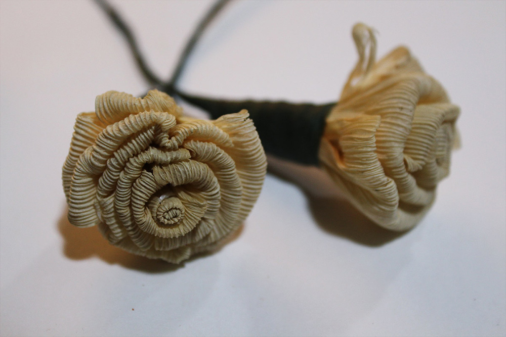 Perfectly coloured corn husk flowers.