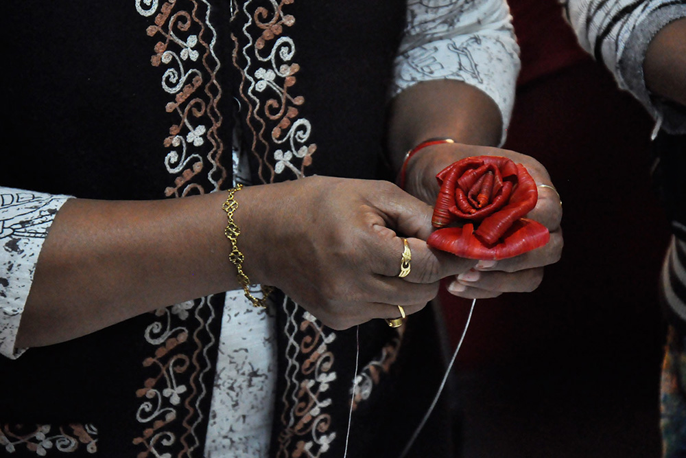 • Layers of husks are placed in an order one after another to make a structure of a real rose.
