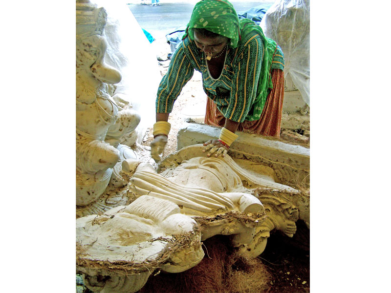 A rigorous and elaborate activity that begins months in advance to the grand 10 day Ganesh utsav, the idol makers of Ahmedabad are a busy clan. Skillfully trained in making clay idols with ease, today these artisans have opted for the Plaster of Paris (POP) material as a cost effective option. The idol makers are small group of people settled in Ahmedabad for last several years. They supply Ganesh idols to Mumbai and many other places in Gujarat.