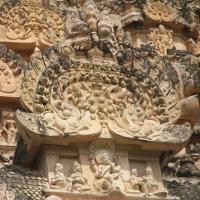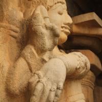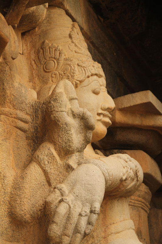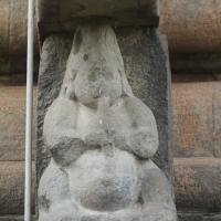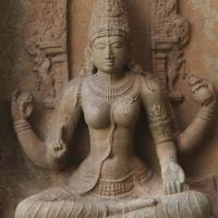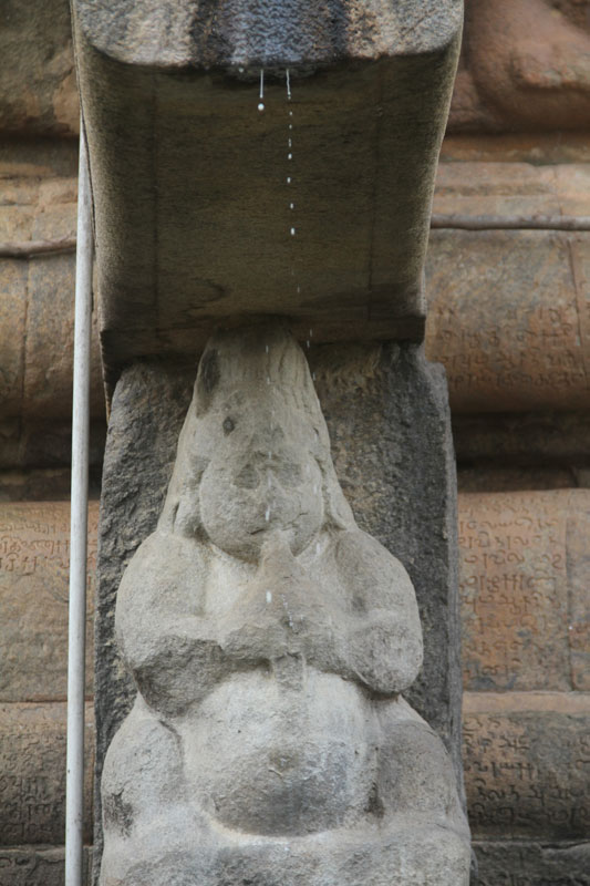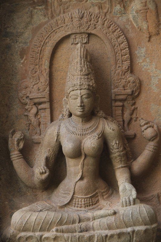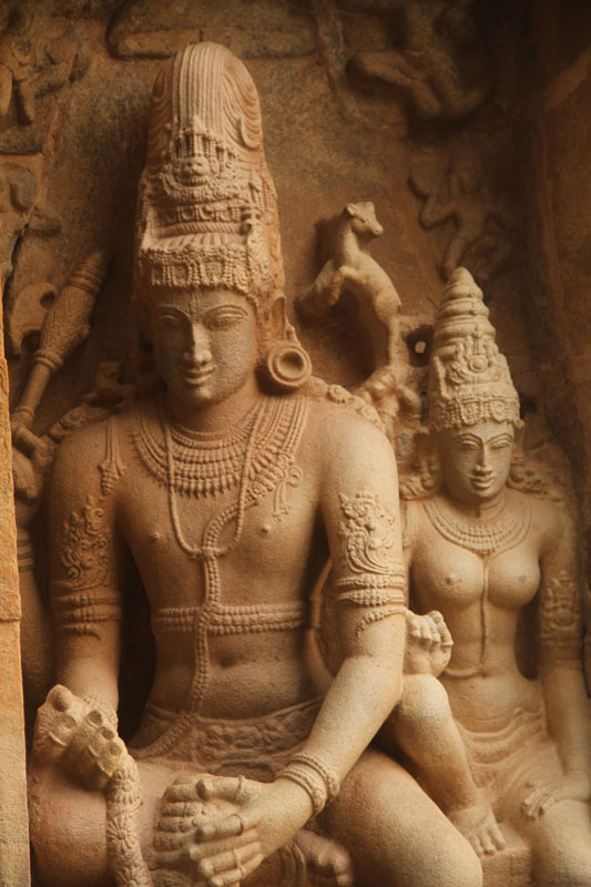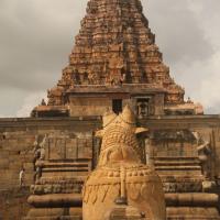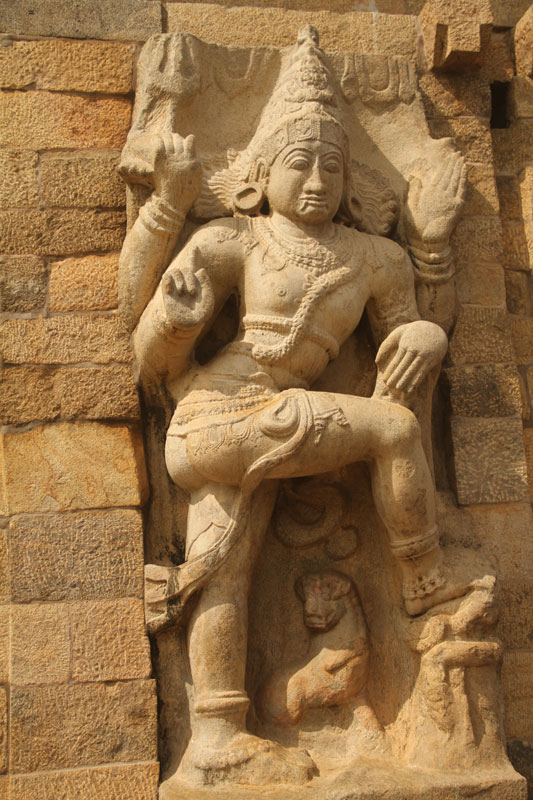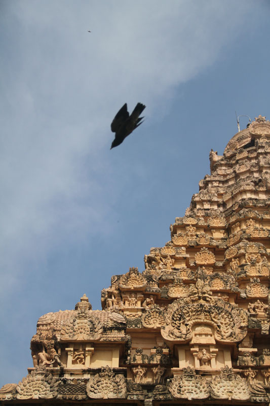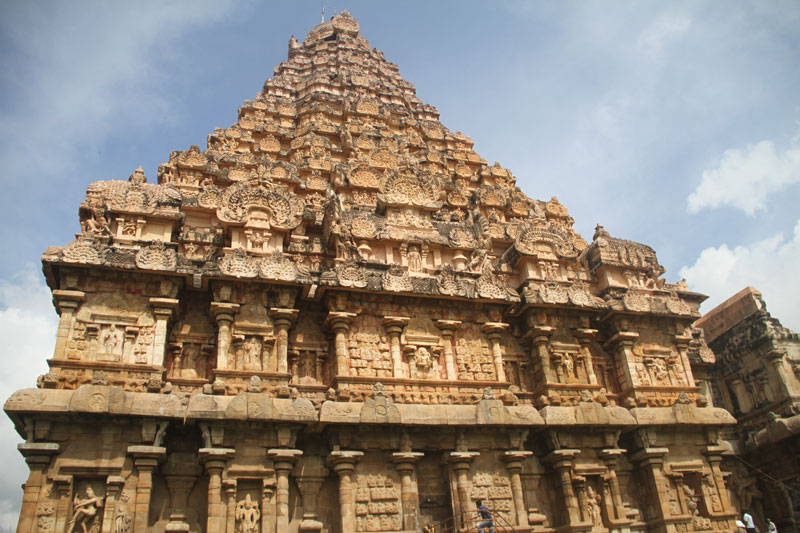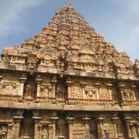 Gangaikonda Cholapuram was erected as the capital of the Cholas by Rajendra Chola I. The Vimana with its recessed corners and upward movement presents a striking contrast to the straight-sided pyramidal tower of Thanjavur but with octagon shape of Dravidian architecture. The Vimana is flanked on either side by small temples.