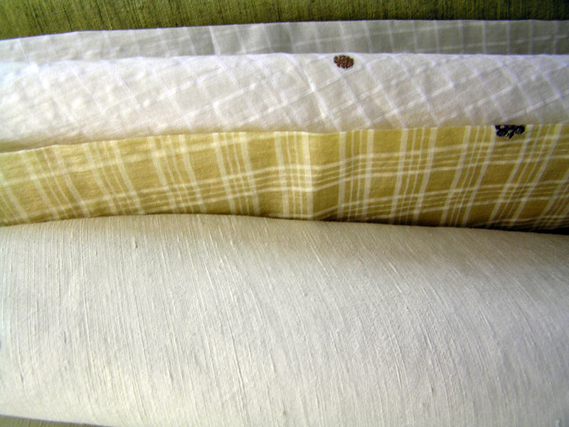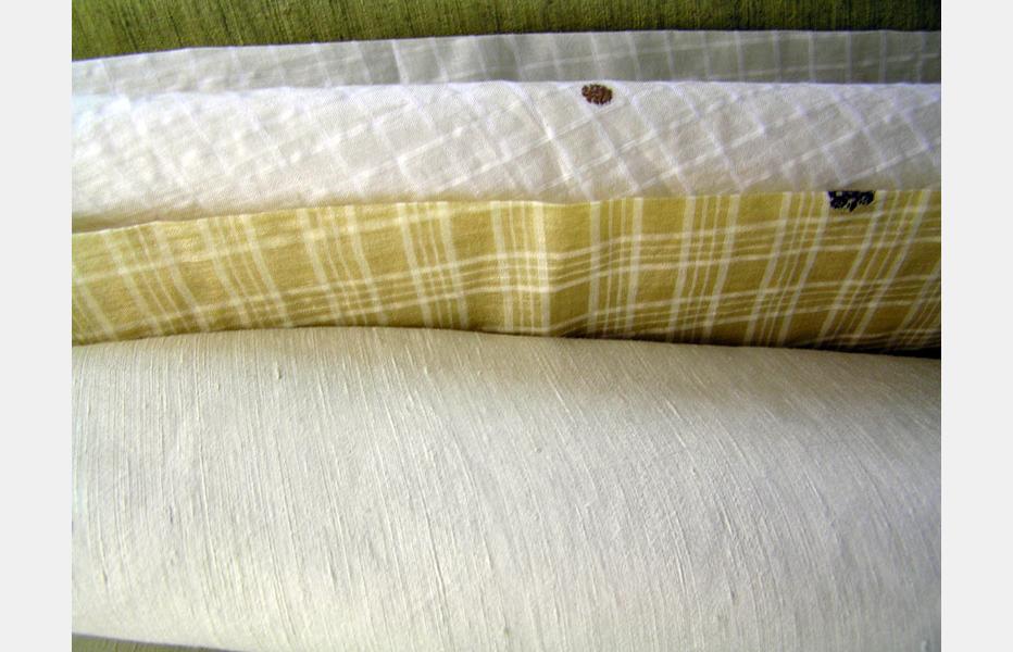 These are examples of handspun and handwoven textiles known as Khadi and made in India. The range depicts the textures and colors used in these textiles made of textile material that is popularly used for shirts and kurtas.