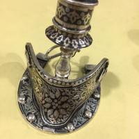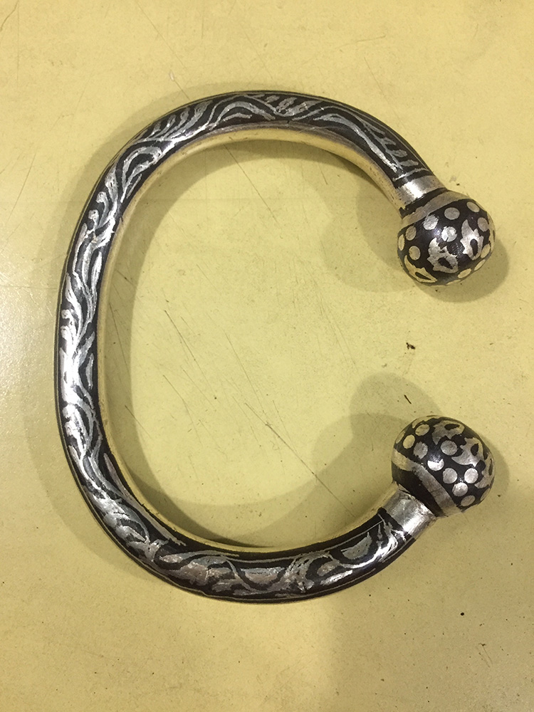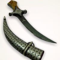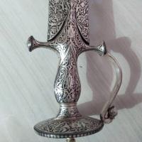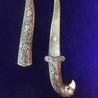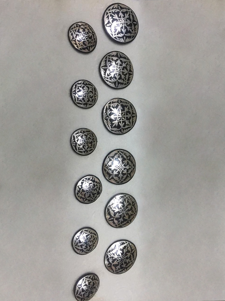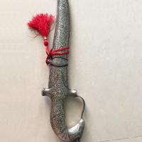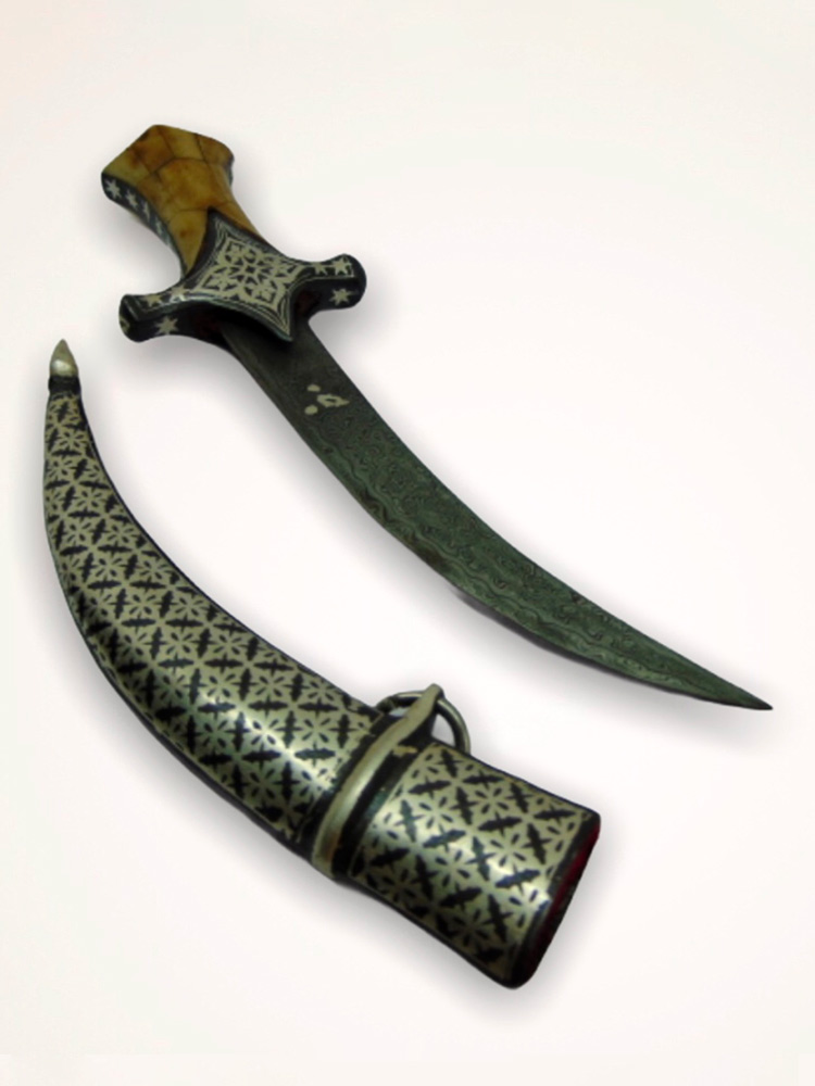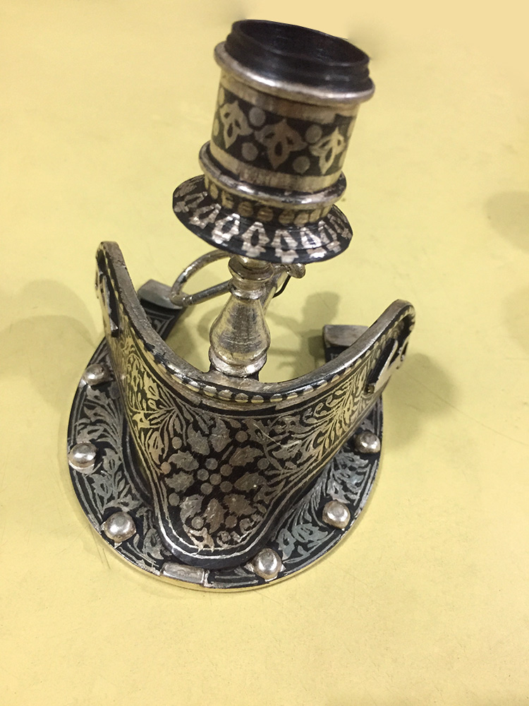 The art of decorating arms and weaponry is known as Koftgiri. This art originated in India around 500-700 years ago with the Mughals. An age-old craft is practised in Mewar district. Nowadays it can be seen in Jaipur and Udaipur. Koftgiri refers to the action of ‘beating’ the pattern into iron. It can be both an inlay and overlay art. It is the art of ornamenting surfaces by inlaying light metal on a dark one using gold or silver wires.