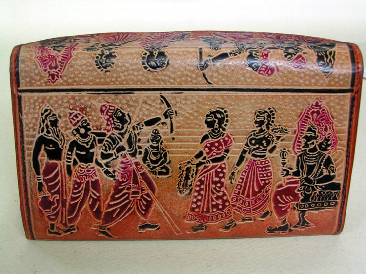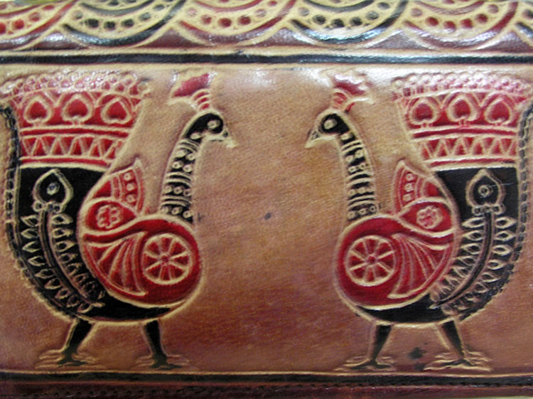 These are examples of the craft of leather embossing is practiced only in West Bengal. This craft of leather embossing was promoted by Shantiniketan. Many students were trained in this art and have come to practice this. They have applied this technique to create many innovative designs and applications.