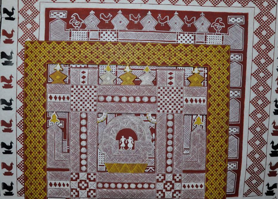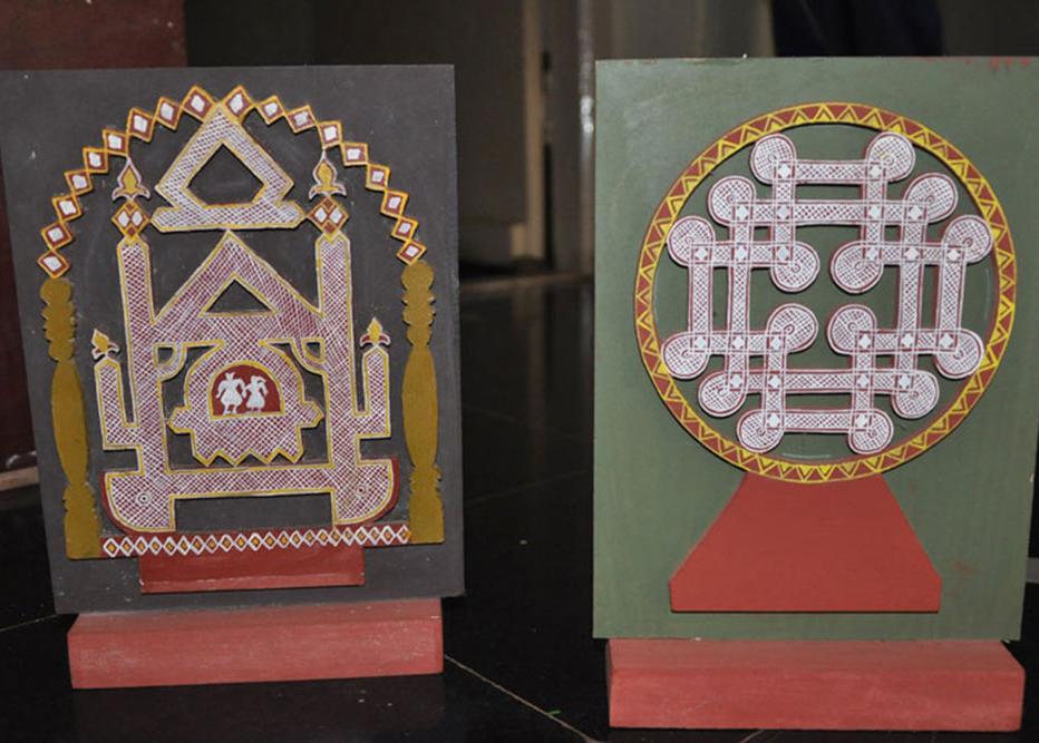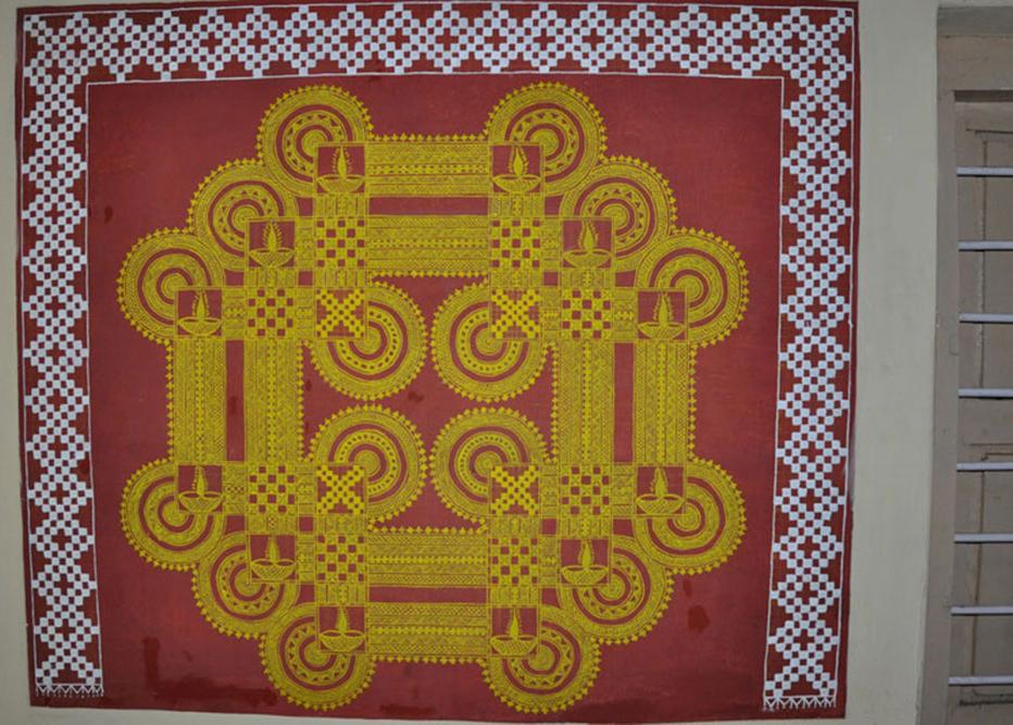 Hase Chittara painting is done on mud walls of tribal houses. The aesthetic designs of tribal figures, geometric patterns are intricately painted with natural grass brush and natural colors which are made using rice flour and Kemmannu-red earth, Sunna-lime stone and turmeric. The unique folk art is mainly practiced by tribal women during their leisure time. All the themes of Hase Chittara are inspired by nature. This art is majorly practiced during weddings and local ritual occasions.