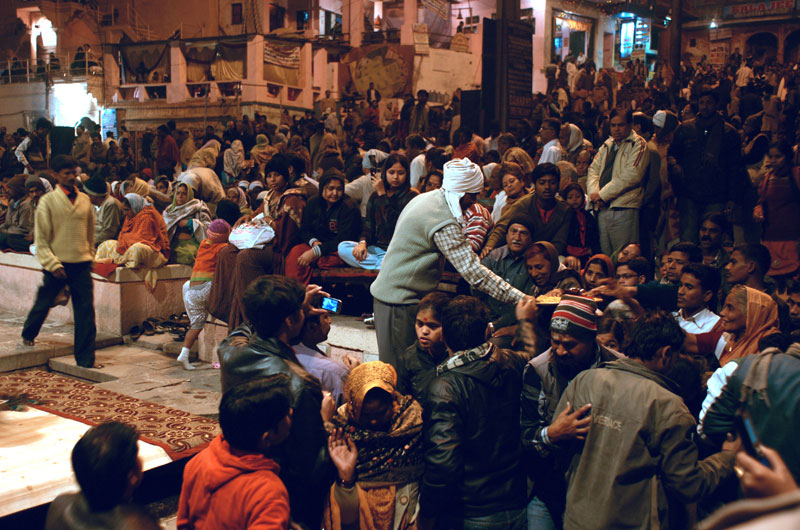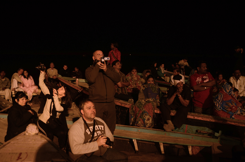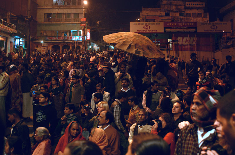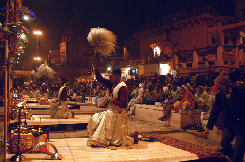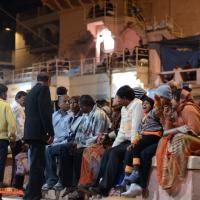 During evening hours, people make their way towards Ghats for Evening prayer - ‘Ganga Aarti’ which takes place at Dasaswamedh Ghat. As the sun sets, the devotees finish their individual prayers and reach back to Ghats, where stage is being set up for the ‘Ganga Aarti’.