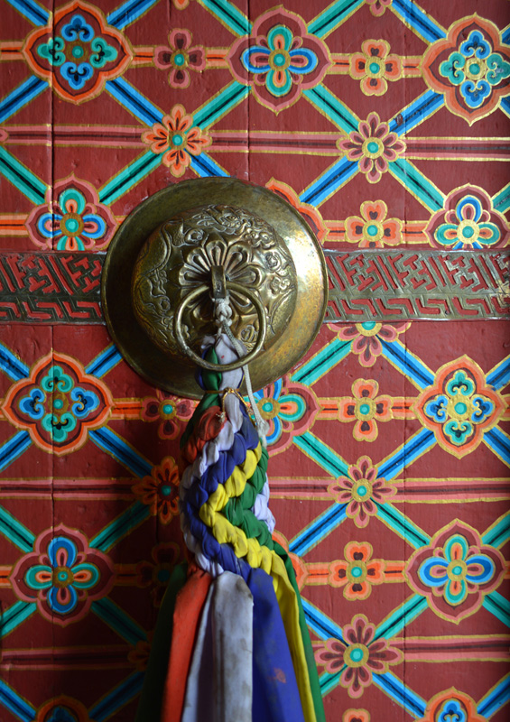 • Traditional Yak hair at the end of a dhwaja bearing the darchor (prayer flag).
