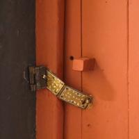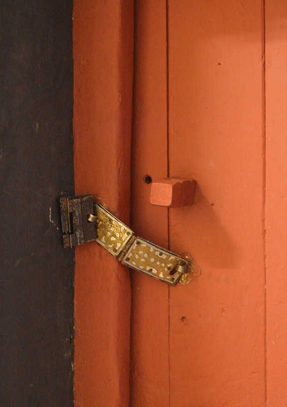 • A handmade metal chain latch - created as interlocking shapes by a metal smith.