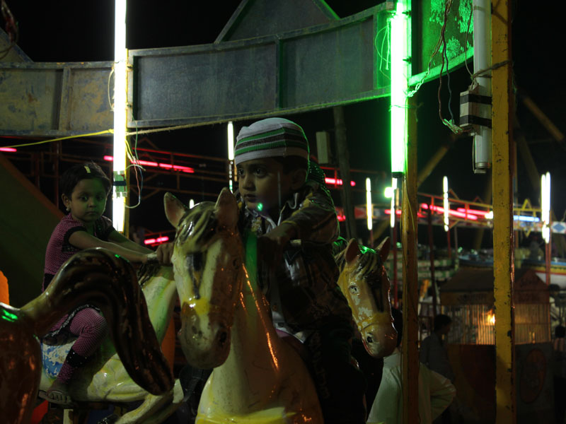 These pictures are an attempt to click the hustle bustle and life of a typical Indian Fest/Carnival/Mela environment. These pictures are clicked in the Urs-e-lal bagh Mela, Mumbai which is an annual fest after the month of Ramdan (the holy fasting month). Such fests are the place for food lovers. From favorite puri halwa to community cooking every thing can be seen in one single market of many markets. Such feasts are the favorite place for children for its games, fairy wheel and adventurous games (especially "Maut Ka Kuan").