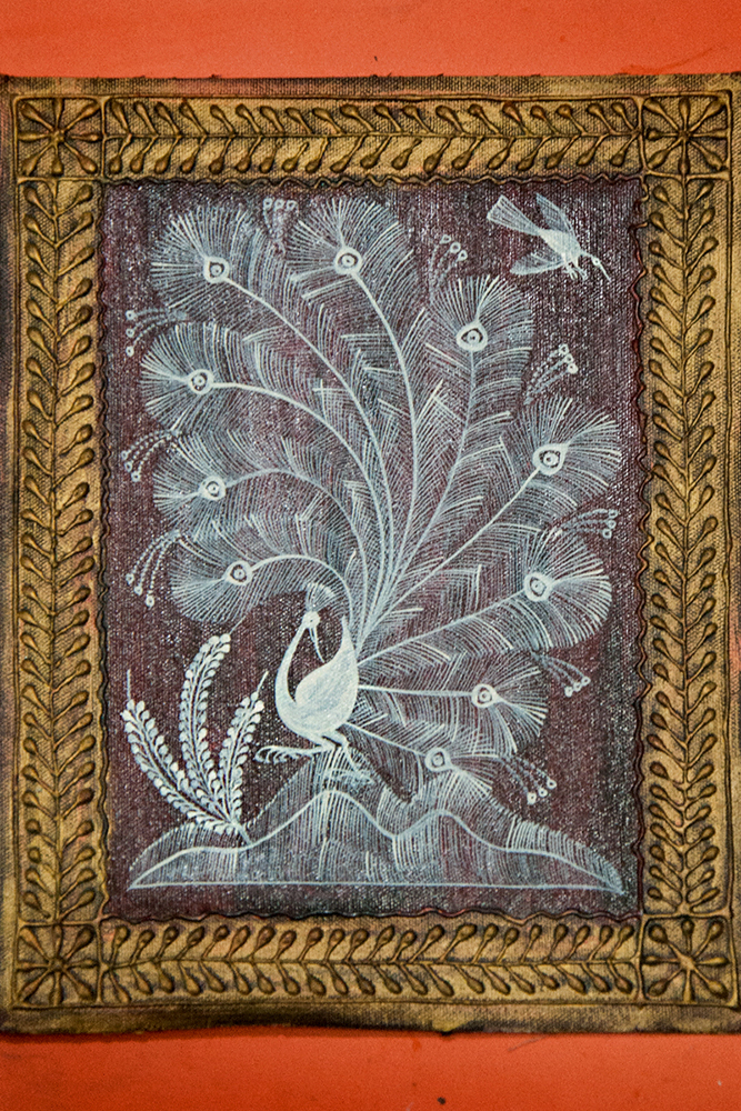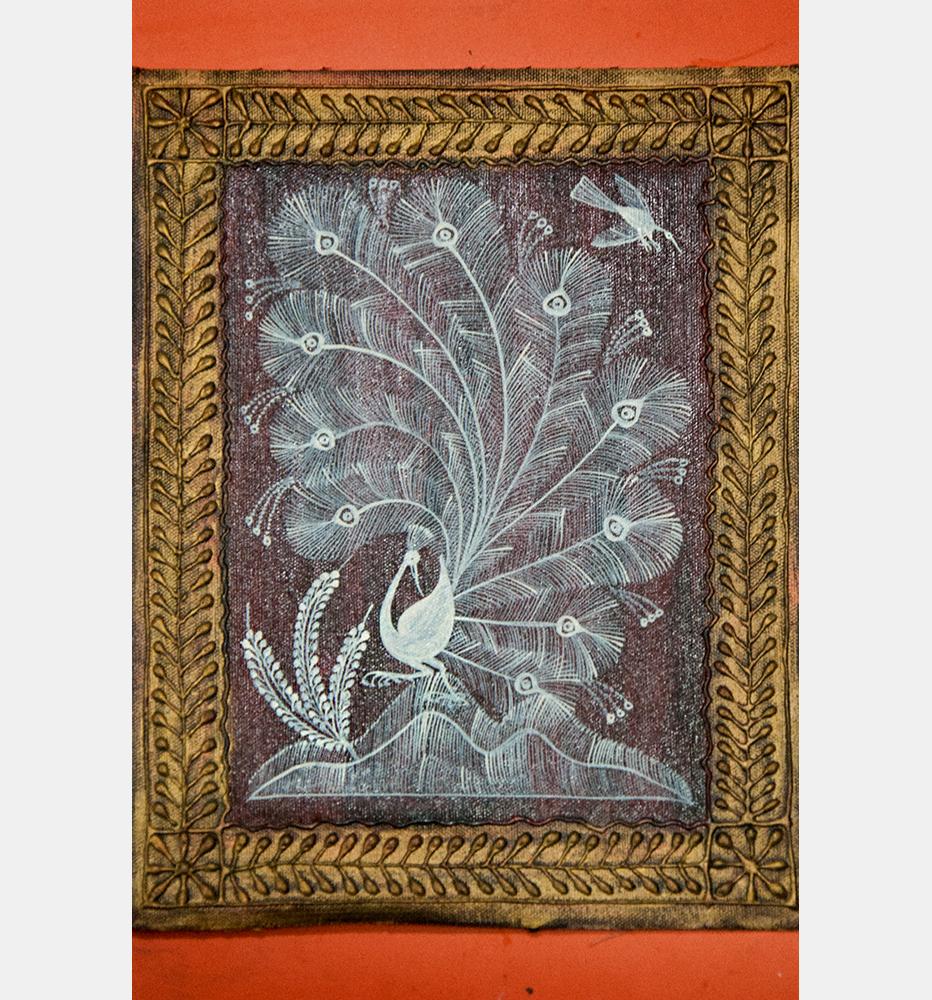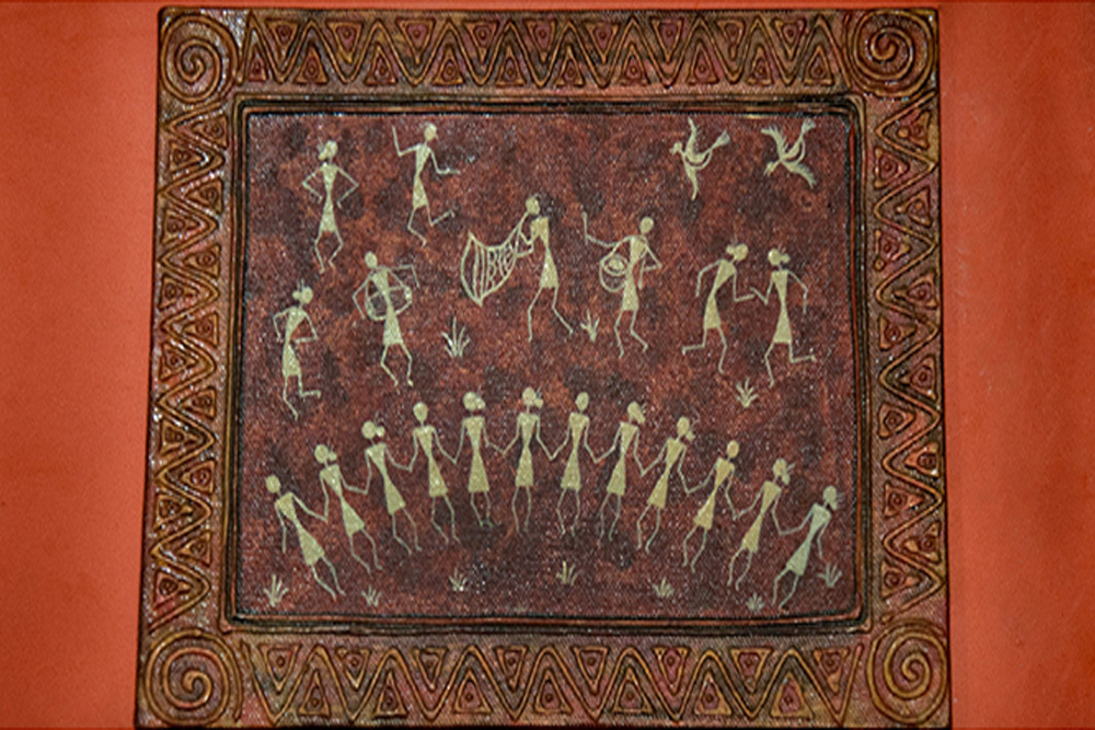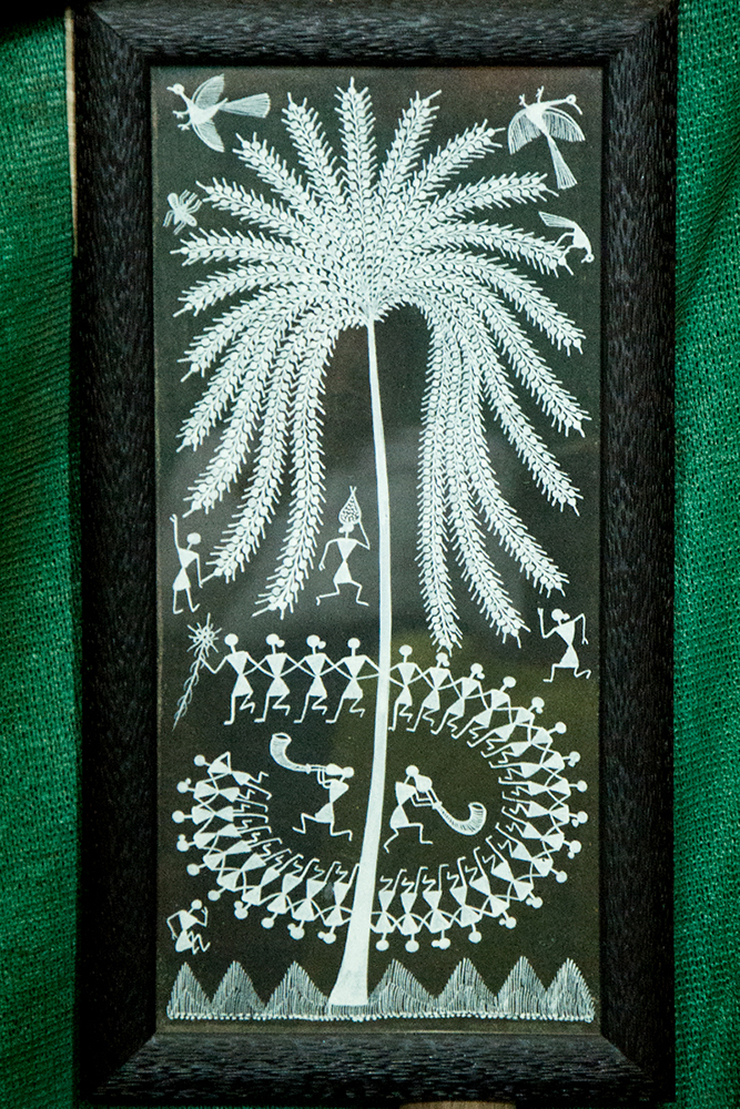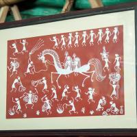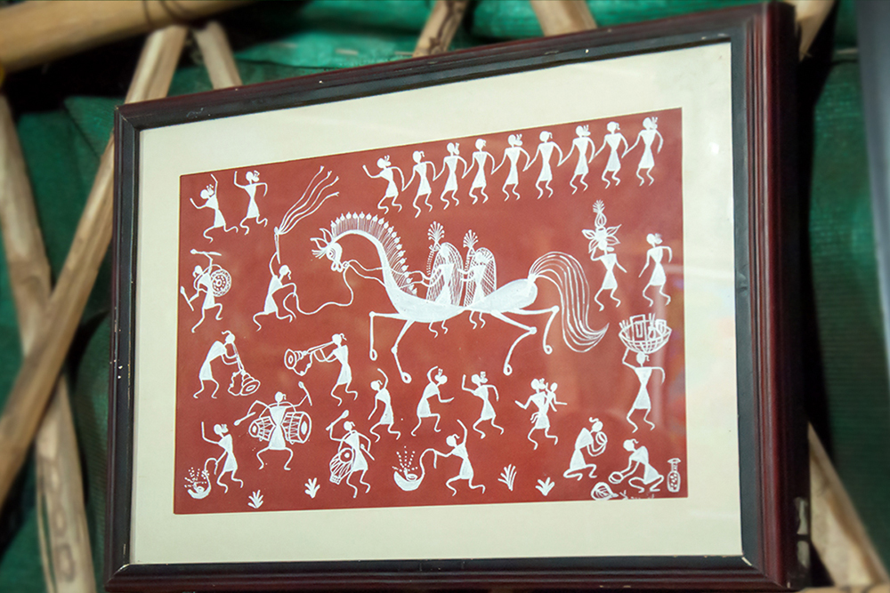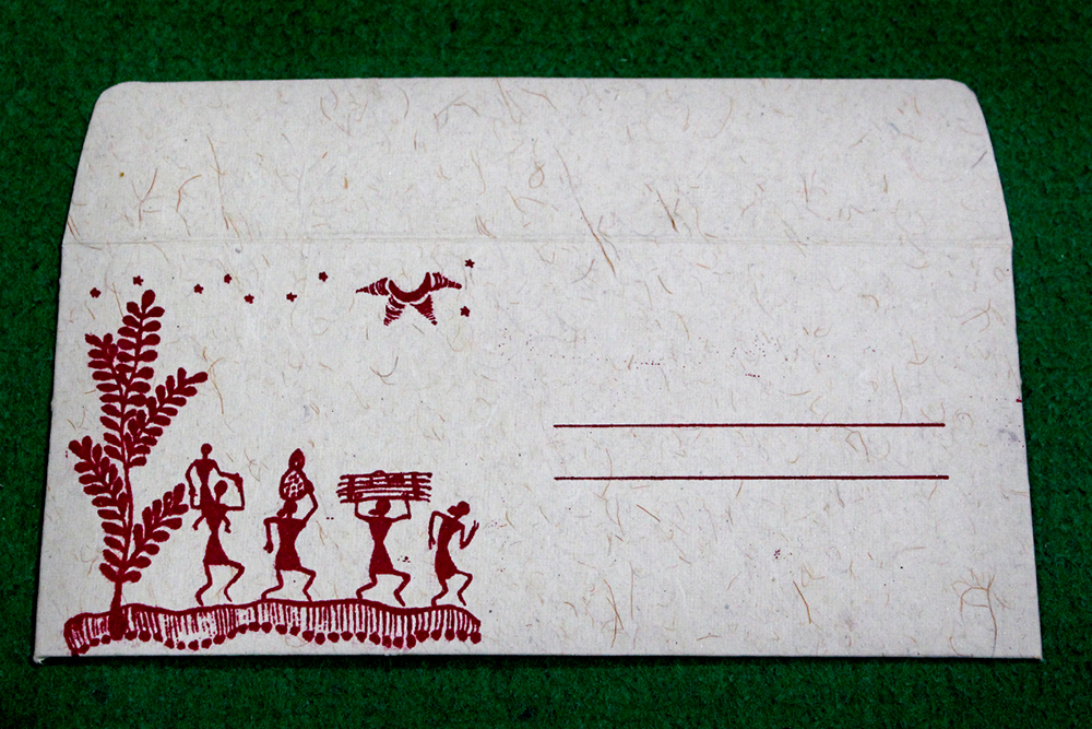 The most important aspect of the painting is that it does not depict mythological characters or deities but the social life of human beings and their connection with animals around them. An artist named Mrs. Vaishali Kawre from Creative Craft, Nagpur, has been practicing Warli paintings since she was 18 years old. The art was taught to her by the tribal people themselves, residing in the Dahanu taluka in the Palghar district of Maharashtra. Mr. Hareshwar Wanga, a master of Warli painting, was her tutor back then. The product range includes greetings, envelopes, bookmarks, cloths, table mats, bedsheets, and sarees carrying Warli designs.