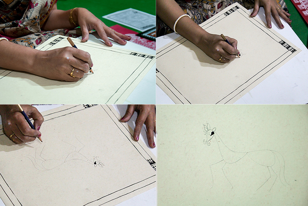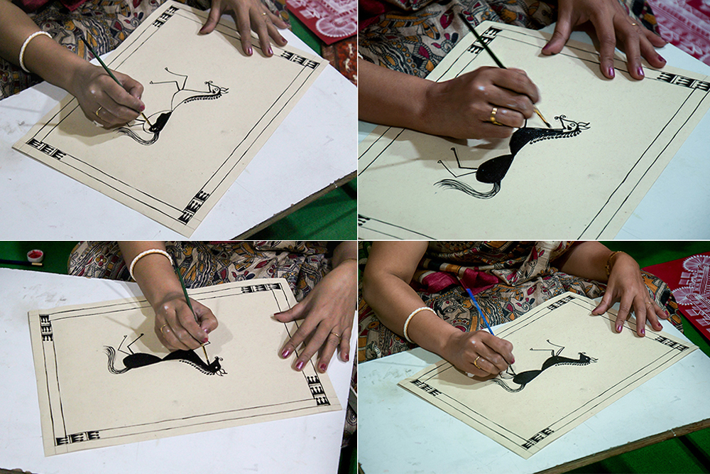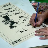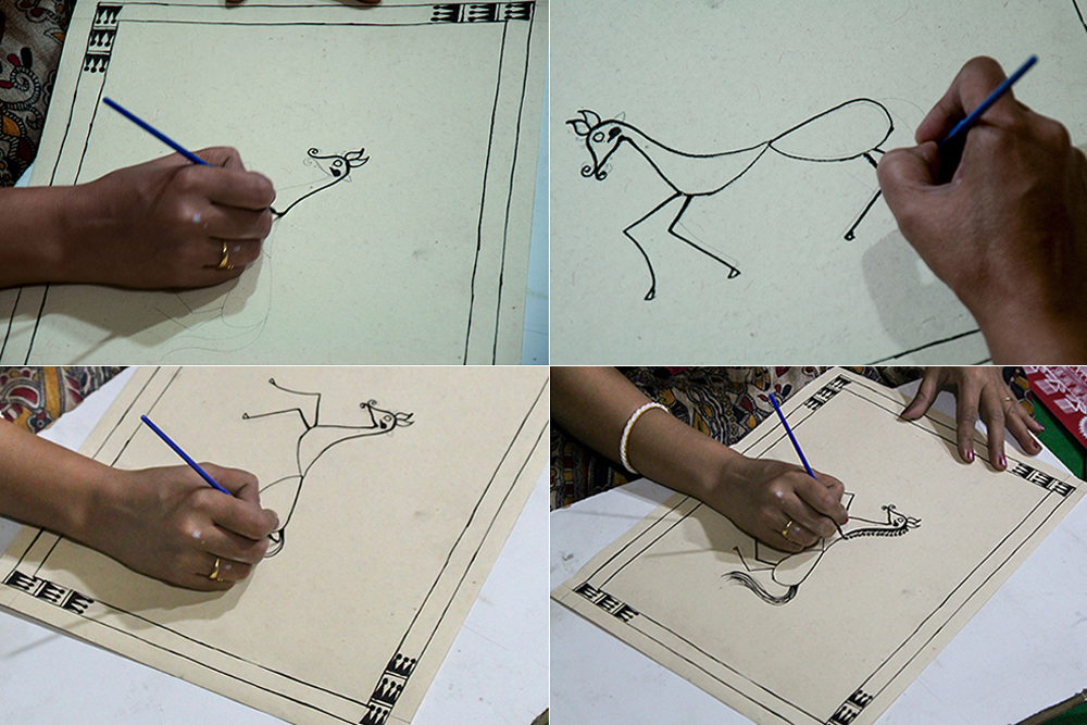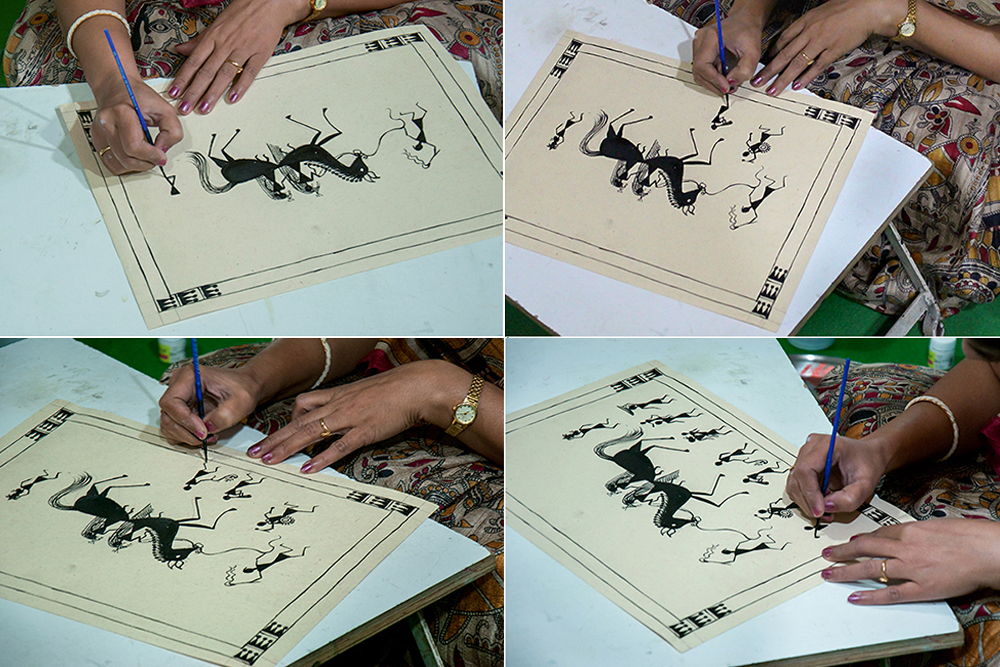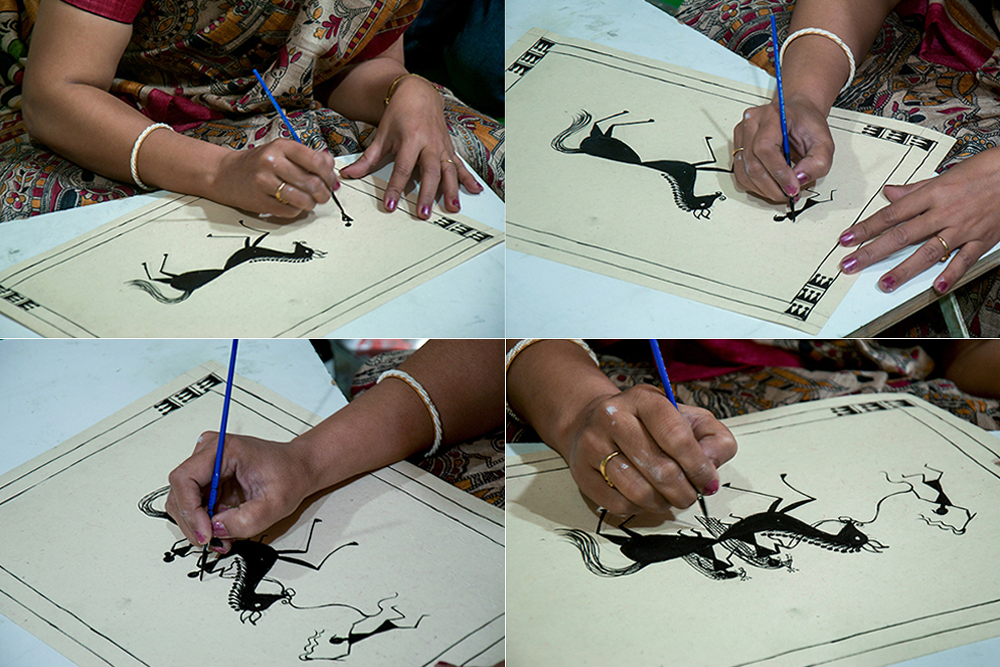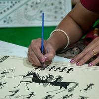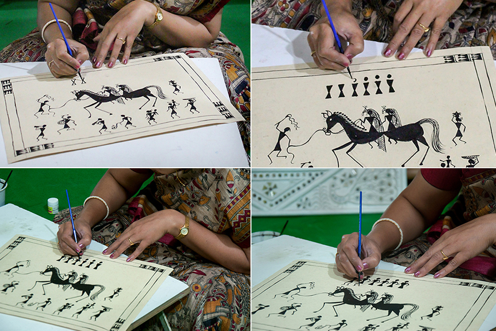 An artist named Mrs. Vaishali Kawre from Creative Craft, Nagpur, has been practicing Warli paintings since she was 18 years old. The art was taught to her by the tribal people themselves, residing in the Dahanu taluka in the Palghar district of Maharashtra. Mr. Hareshwar Wanga, a master of Warli painting, was her tutor back then. The product range includes greetings, envelopes, bookmarks, cloths, table mats, bedsheets, and sarees carrying Warli designs.