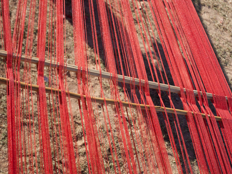 A. The acquired threads are dyed in desired colors depending on what the design demands. Generally synthetic colors are used for dying. Threads are dipped in the boiling mixture of color and water. Wool is dyed at a higher temperature whereas the cotton threads are dyed at a lower temperature. Boiling helps in fixing the colour on to the threads.