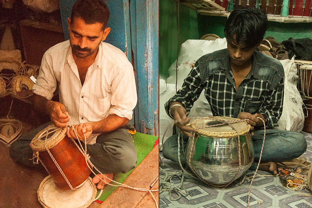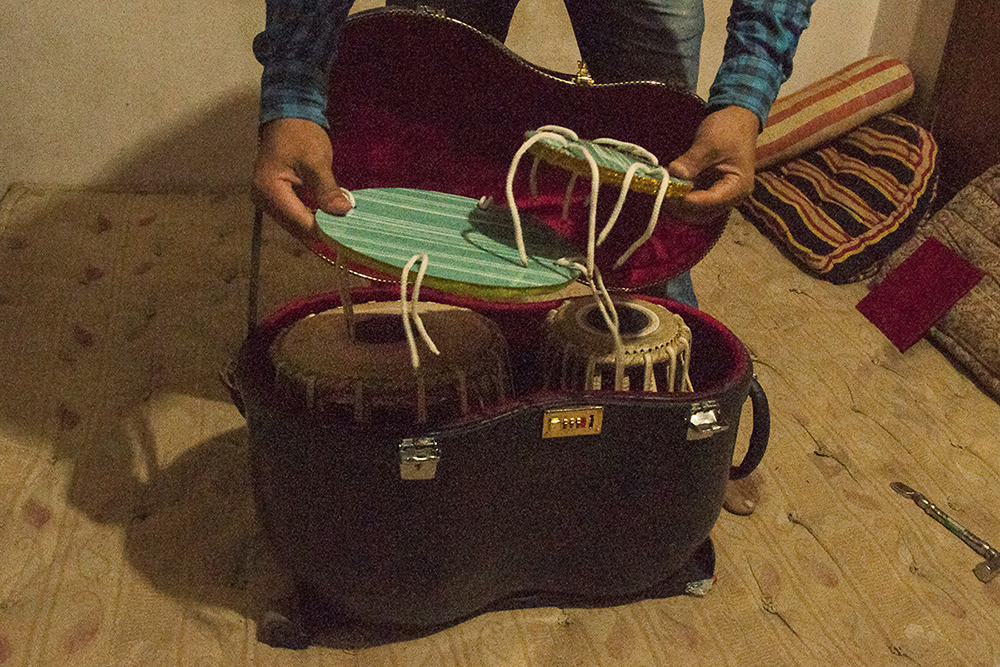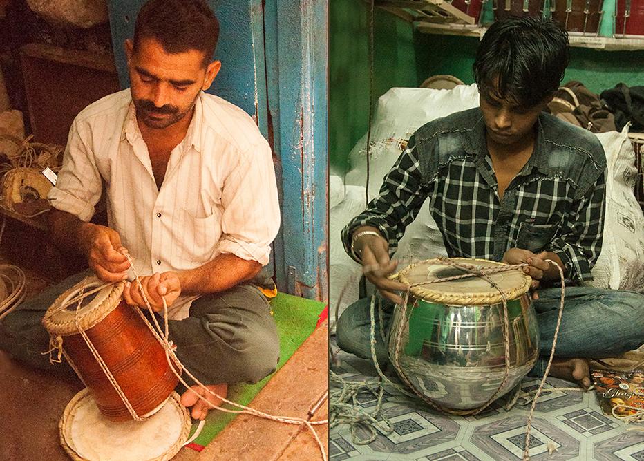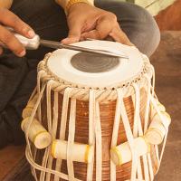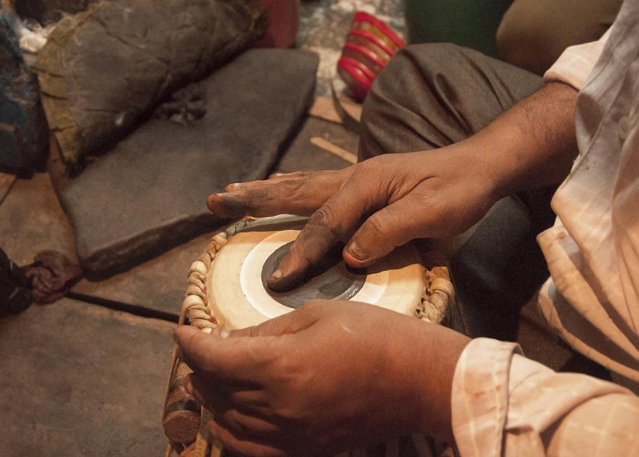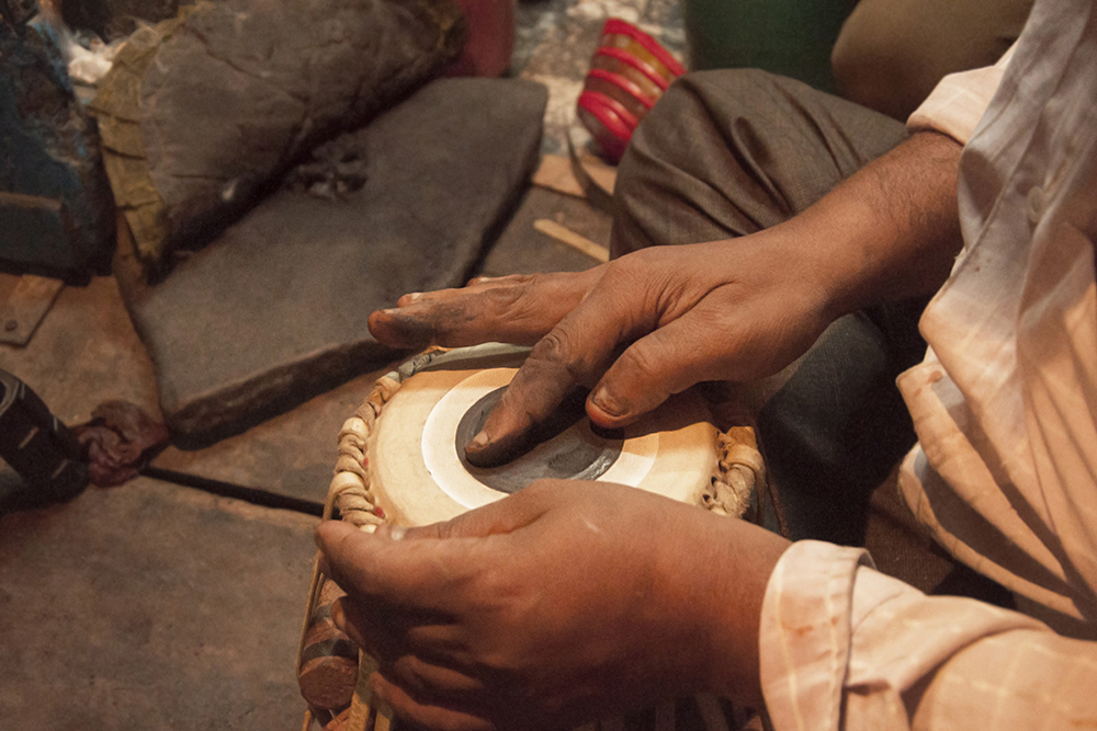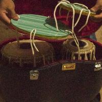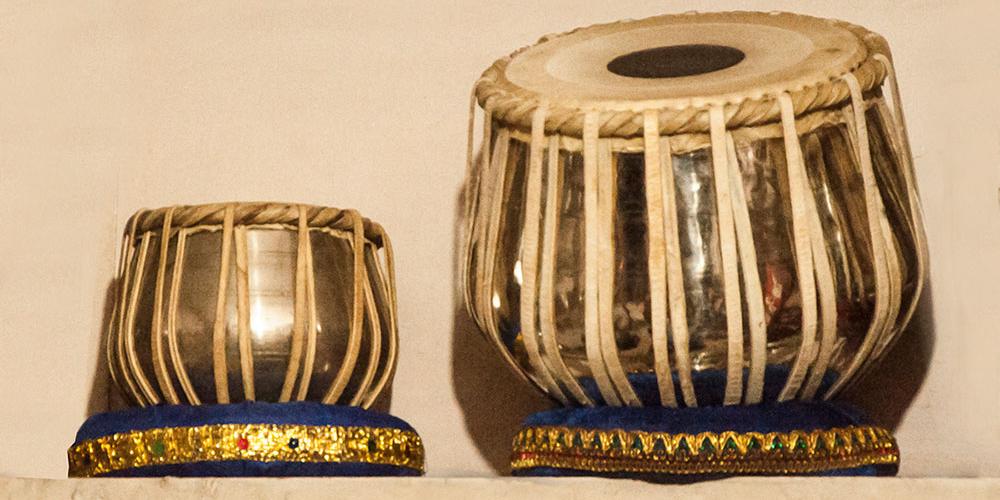 • Carved Drums of Tabala on the left and metal drum - part of Bayan.