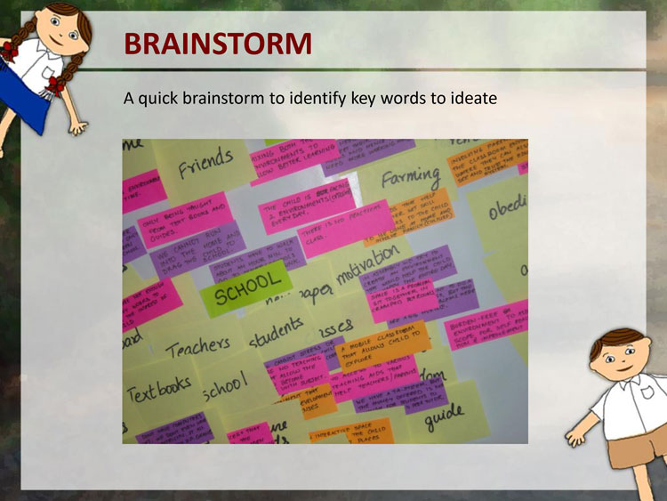 The secondary study included finding out projects that were done in IDC and on-going industry projects. Then a brainstorming session was done along with mind maps to jot down all the data in a consolidated manner. Next the analysis of the user studies was done with a list of goals, problems and possible solutions. Then different domains were identified in which ideas would be developed.