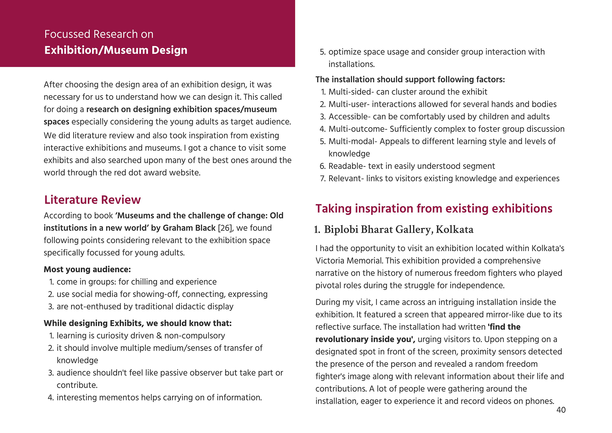 - Focussed Research on Exhibition/Museum Design