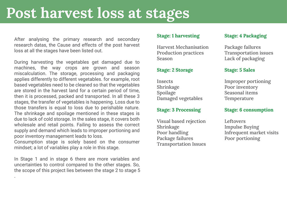 • Post harvest loss at stages