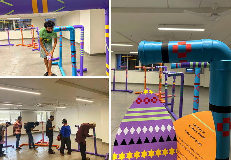 To enhance interactivity, the pipes are equipped with sensors that enable viewers to switch between English and the regional language, as well as to replay the recordings from the beginning. This interactive component encourages visitors to engage with the installation actively, fostering a deeper understanding of the cultural context and linguistic nuances associated with each language. By enabling people to hear the endangered languages in their spoken form, the installation serves as a powerful medium to evoke empathy and promote appreciation for the linguistic and cultural diversity of North East India.