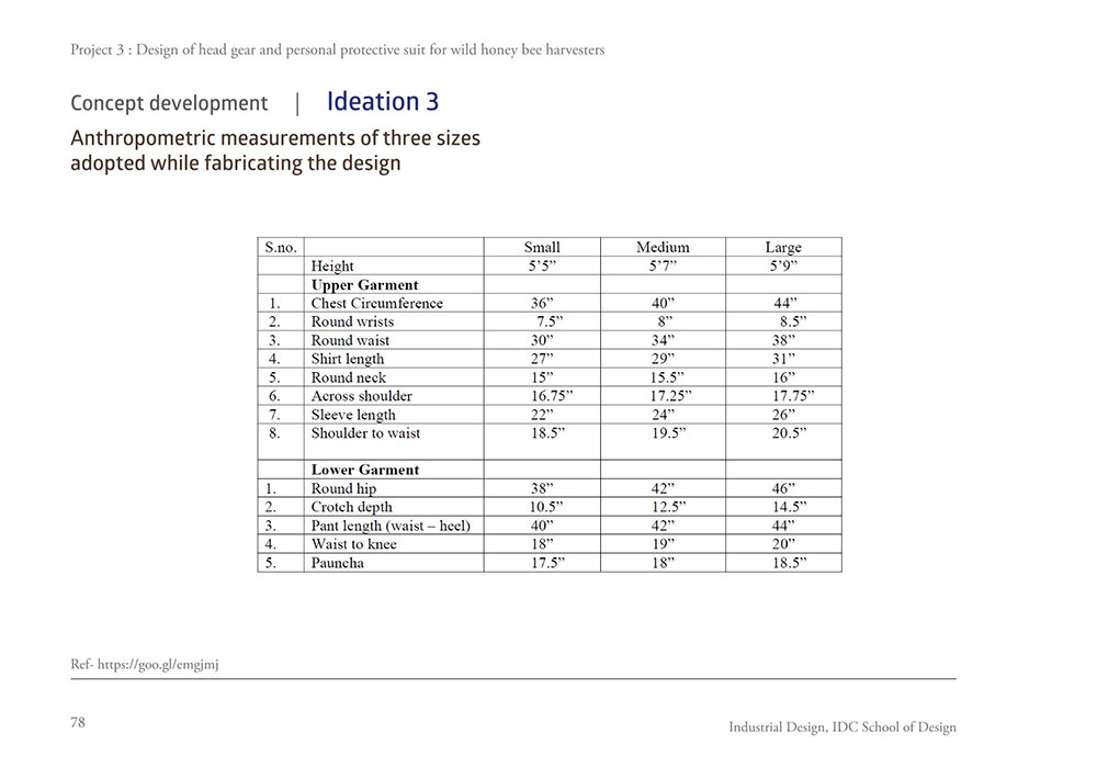 - Anthropometric measurements of three sizes adopted while fabricating the design