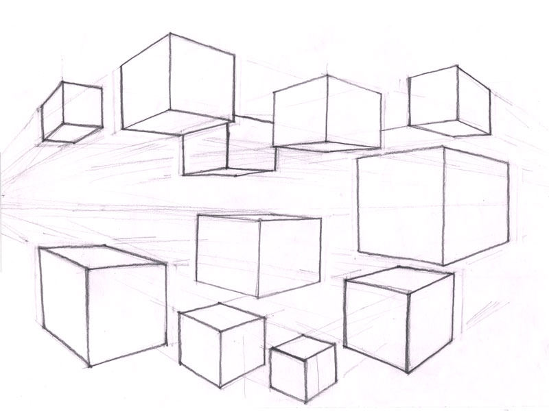 • As you get a hang of the circles and cubes in perspective, try drawing objects that are predominantly combinations of these.