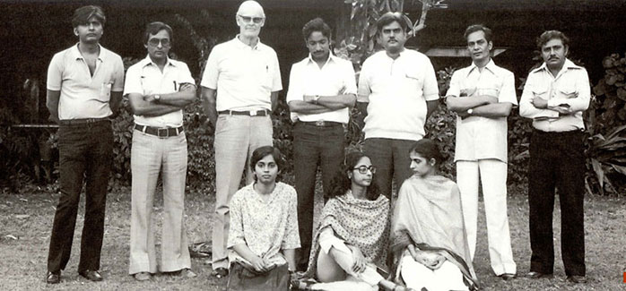 Standing: left to right- Narendra Patel, Mahendra Patel, Clair Weeks, Akhil Saxena, IS Mathur, SC Sharma, RL Mistry.