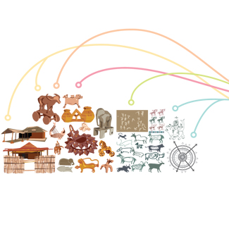 A very poetic way of characterizing our Tree of Life would be to treat it as the Speaking Tree…a tree replete with wisdom from the past, guiding us through our everyday ways, and helping us see the way Nature touched all facets of life in ancient India, be it while weaving our sarees, making our "lotas", using Nature motifs on our coins, jewelry, paintings or even our masks. These form the separate branch panels on our Tree of Life.