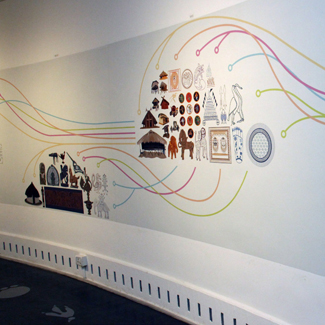 And further, because our environmental beliefs have descended from Buddhist and Jain principles of 'ahimsa' – do no harm to any life form - we get to see the intriguing coexistence of the tiger and deer motifs on some of the artifacts on the leafy canopy of the tree installation, the leafiness representing biodiversity.
