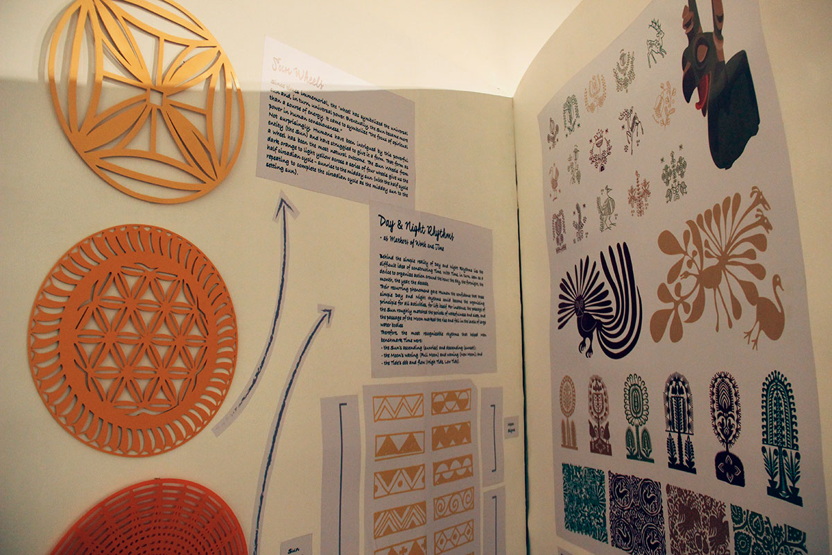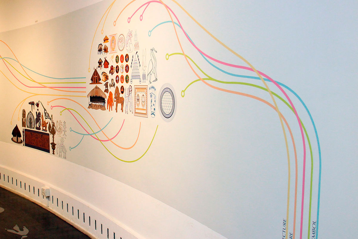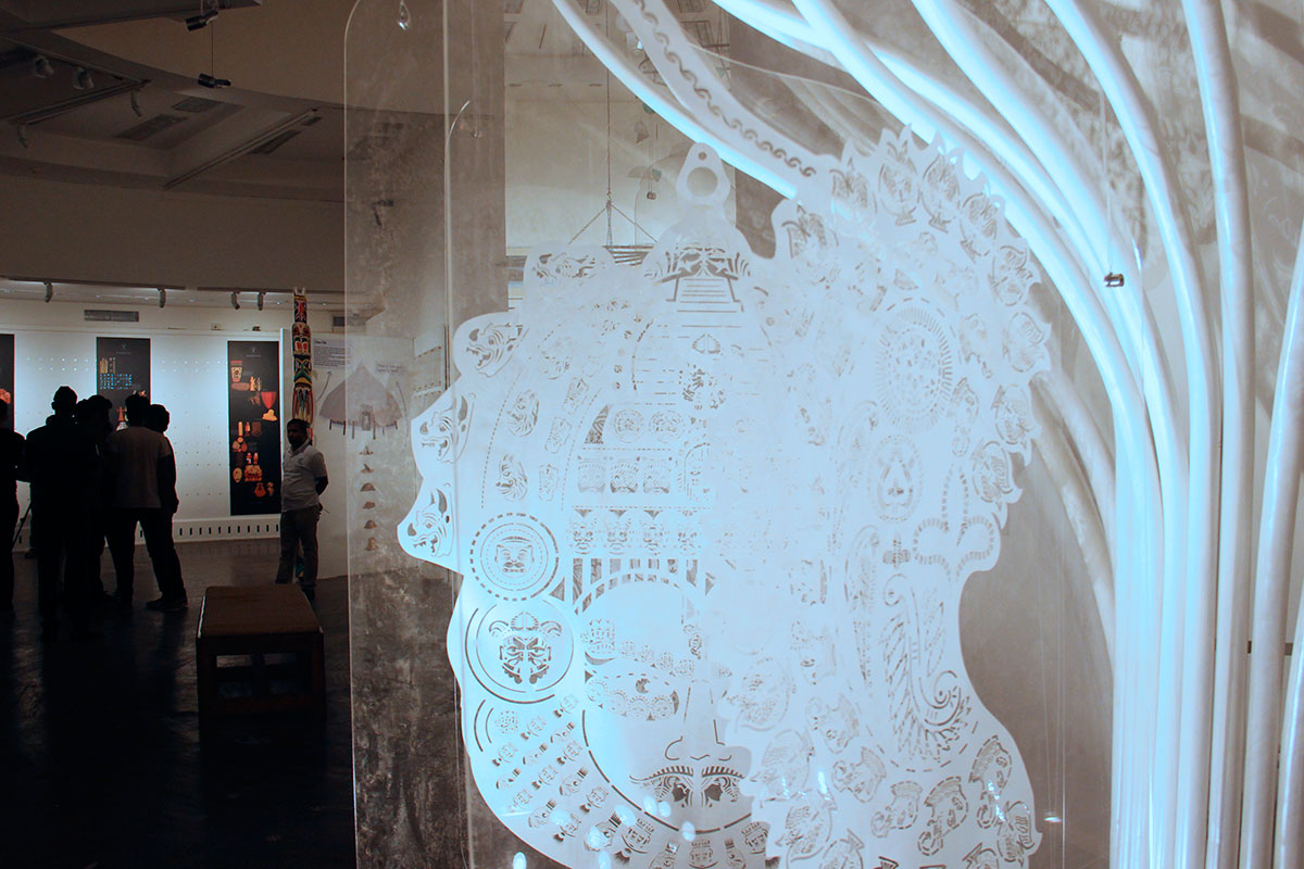 And further, because our environmental beliefs have descended from Buddhist and Jain principles of 'ahimsa' – do no harm to any life form - we get to see the intriguing coexistence of the tiger and deer motifs on some of the artifacts on the leafy canopy of the tree installation, the leafiness representing biodiversity.