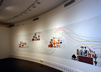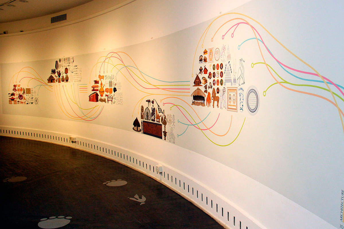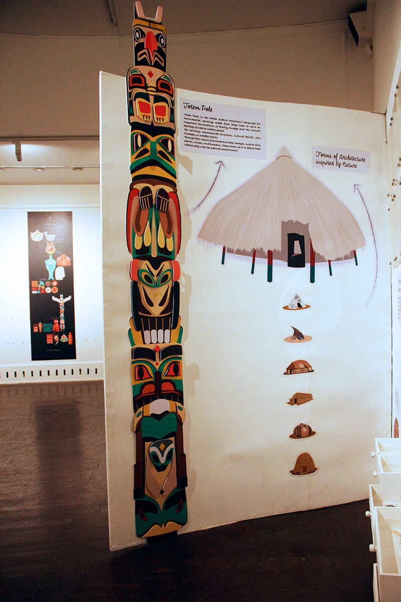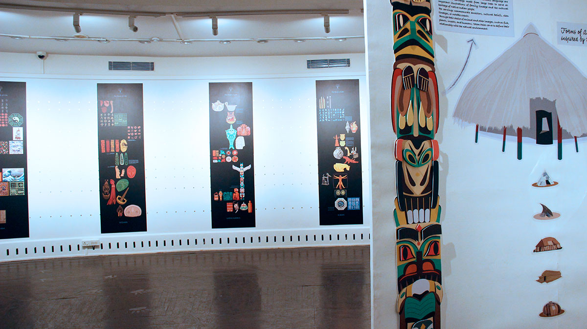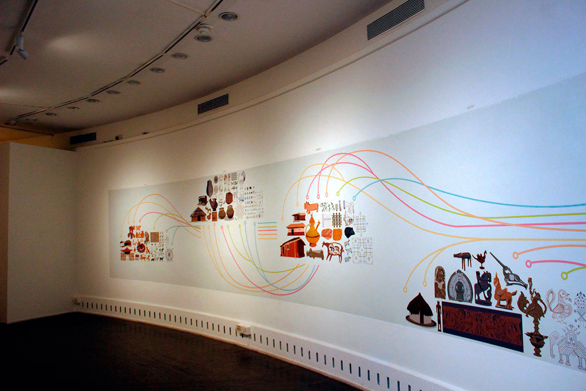 And further, because our environmental beliefs have descended from Buddhist and Jain principles of 'ahimsa' – do no harm to any life form - we get to see the intriguing coexistence of the tiger and deer motifs on some of the artifacts on the leafy canopy of the tree installation, the leafiness representing biodiversity.