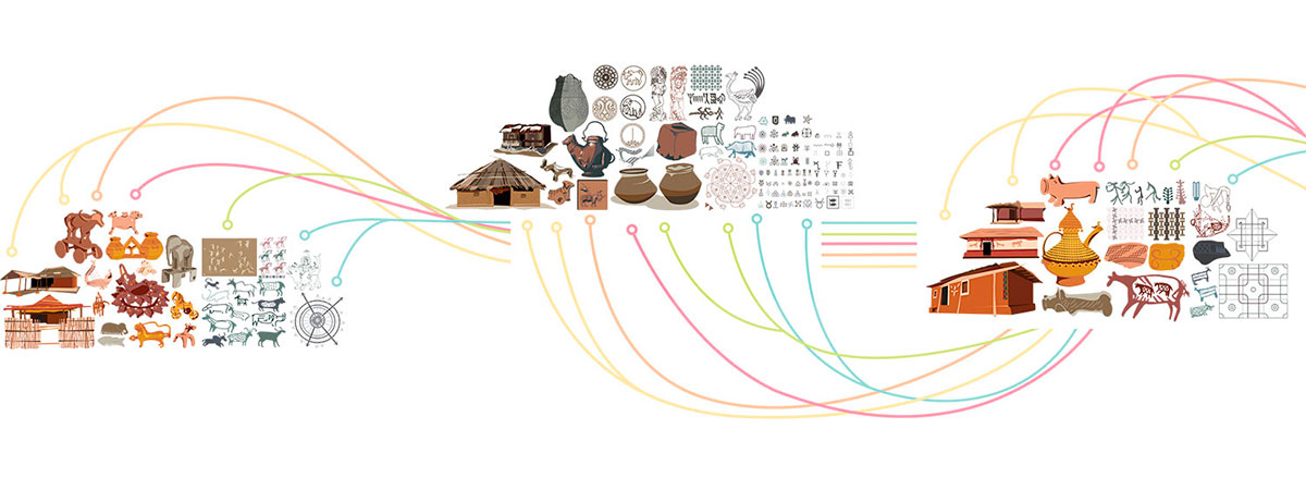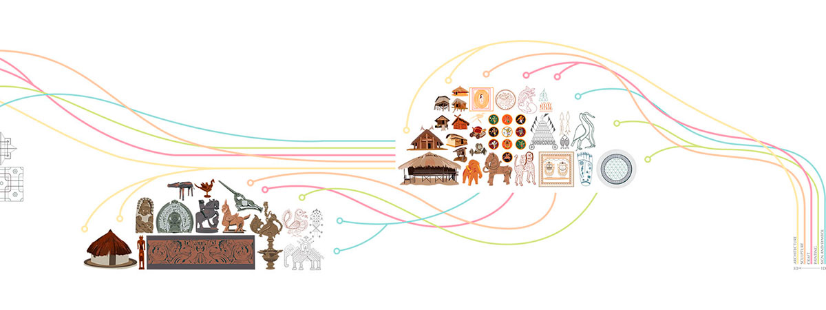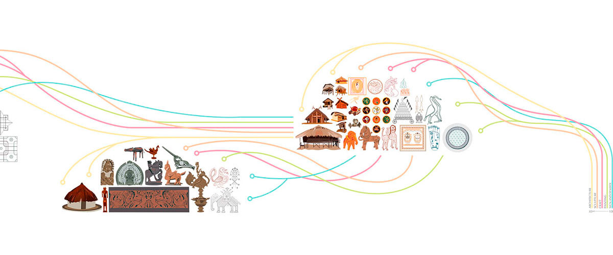 A very poetic way of characterizing our Tree of Life would be to treat it as the Speaking Tree…a tree replete with wisdom from the past, guiding us through our everyday ways, and helping us see the way Nature touched all facets of life in ancient India, be it while weaving our sarees, making our "lotas", using Nature motifs on our coins, jewelry, paintings or even our masks. These form the separate branch panels on our Tree of Life.