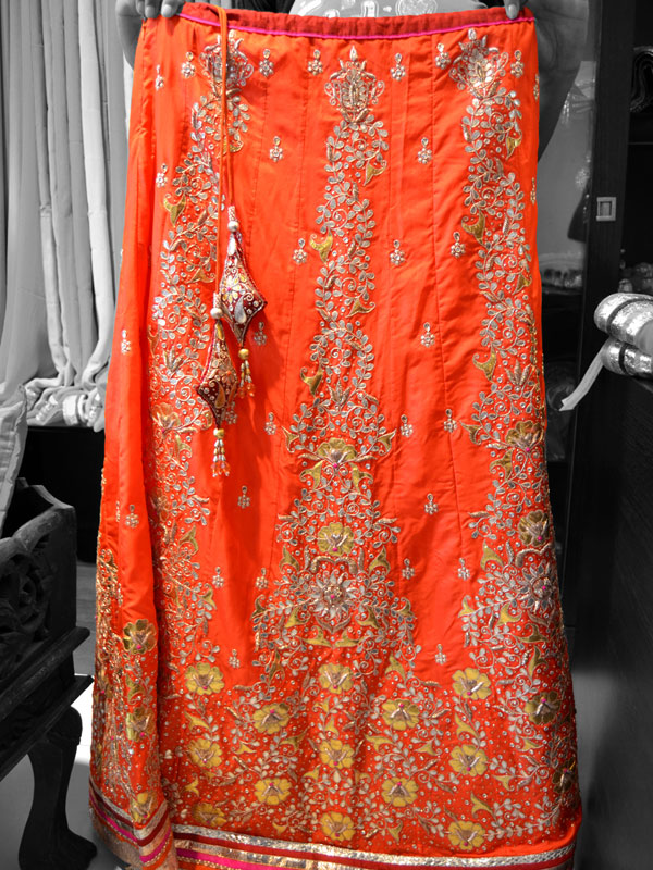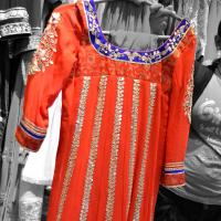 Gota work is essentially used for making women's formal costumes light in weight and rich in look. The master-karigars of this craft take great pride in their work and are a balanced mix of Hindus and Muslims. Traditional articles include turbans, lehenga-cholis, sarees, salwar kameez and dresses. Contemporary ones include kurtis, tops, skirts, dupattas, stoles, cushion covers, mobile covers and decorative panels. Predominant colors are hot pink, blood red, bright orange, fresh green and electric blue.