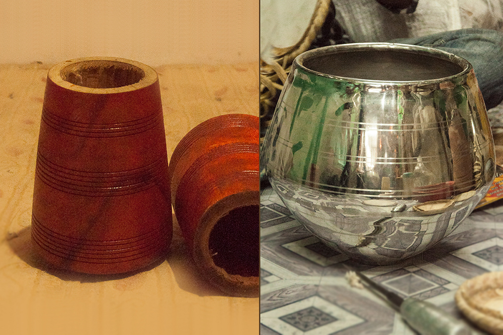 Carved Drums of Tabala on the left and metal drum - part of Bayan.