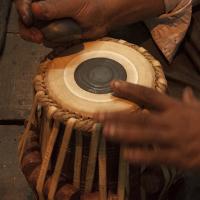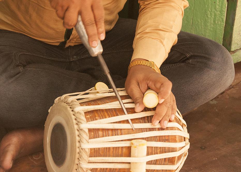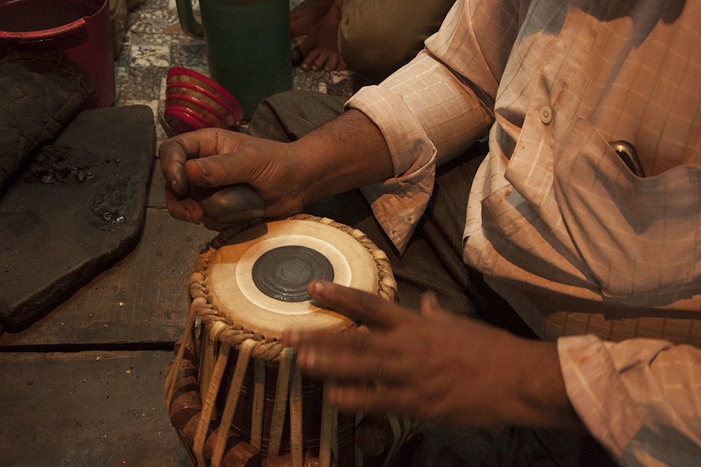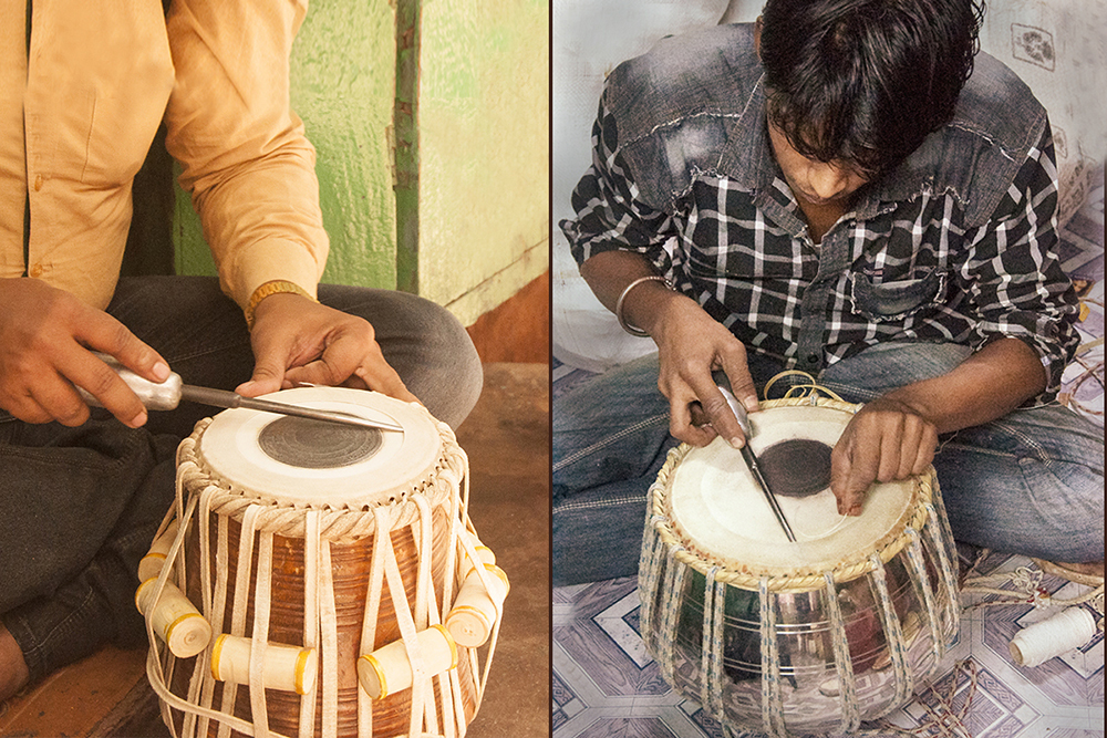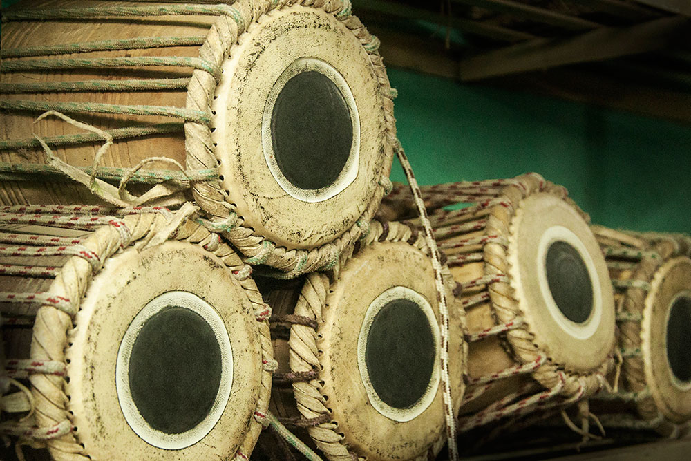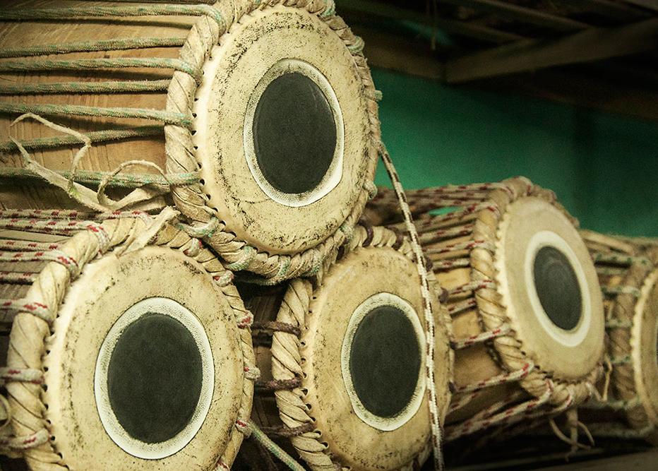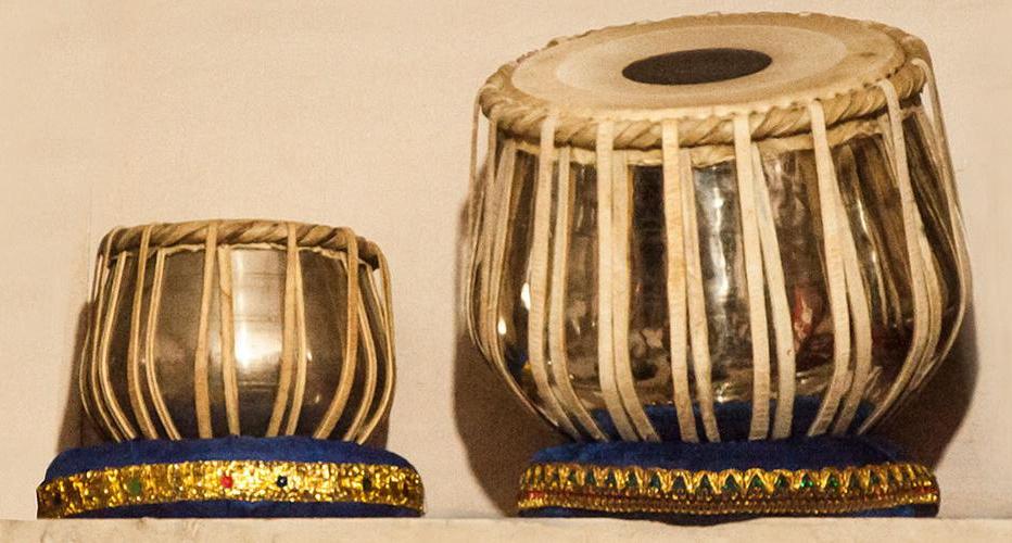 • Carved Drums of Tabala on the left and metal drum - part of Bayan.