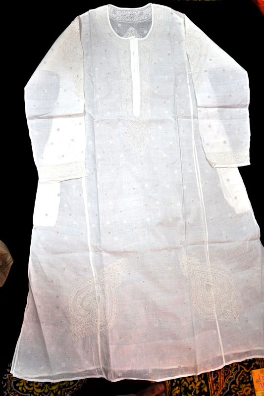 Washing: Washing is the final stage of production process. The fabric after embroidery work is first soaked in water and then washed to remove the block printed blue color. Then it is starched and ironed to obtain stiffness. The final product is now ready for the market.
