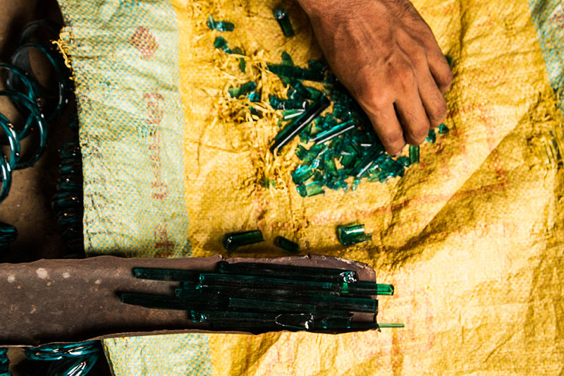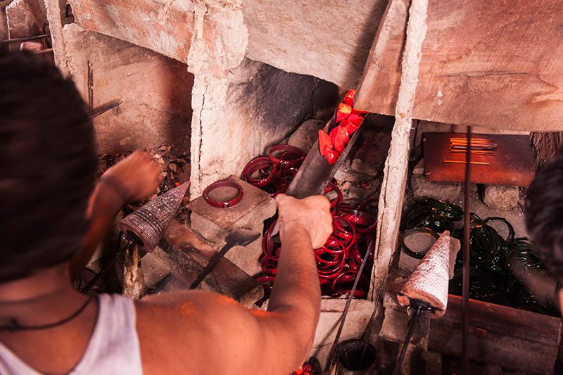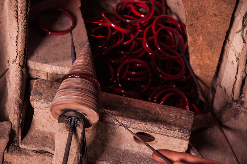 Bangles, often called “Choodi” in Hindi are traditionally worn by women to symbolize matrimony. Purdilnagar is one of the main centers for making of bangles using an open furnace method.