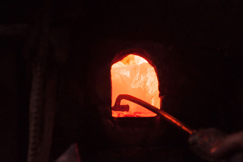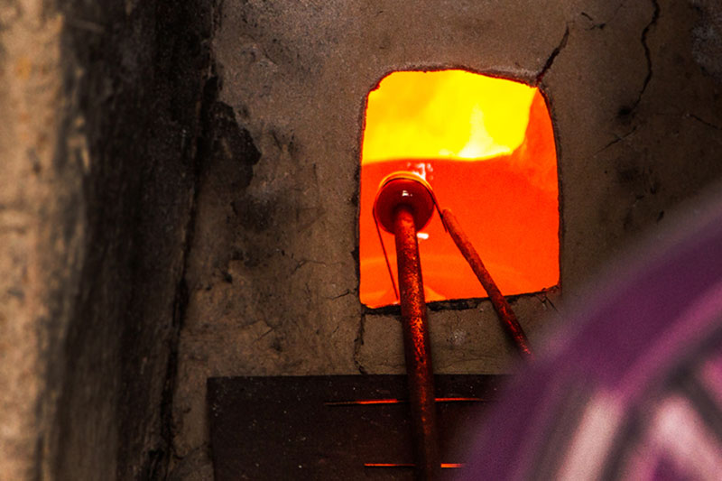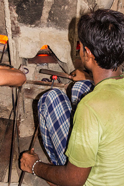 Different designs are also created by the skilled artisan who work in a cluster of 15 to 16 people engaged at a single bhatti or furnace which is maintained at a temperature of around 500 to 600°C.