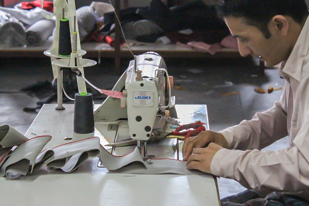 Stitching: Firstly, the top portion of the cap is prepared by attaching the two round-shaped cloths. The canvas is placed in between the two finished-shaped fabrics, and circular stitching is done on the machine. The canvas gives stiffness to the cap. Then both the edges of the strip and top are stitched together using the sewing machine. The front part of the cap is attached to a designed border. At last, the prepared cap is put upon the wooden block and ironed to remove wrinkles.