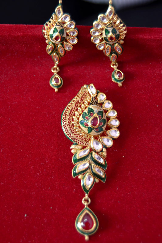 Kundan-Meena jewelry of India has a growing demand the world over. The most desired products include pendants, earrings, rings, necklaces, nose rings, chokers, anklets, waist belts, armlets, maang-tikas and other decorative items.