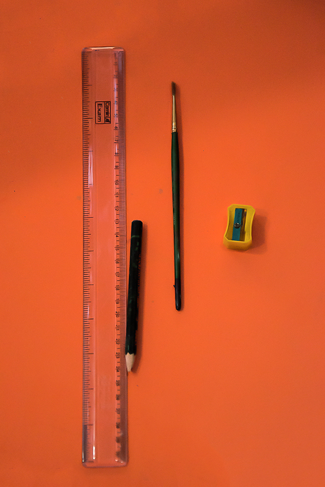 • A Ruler and Pencil: These are used for measuring, drawing designs and straight