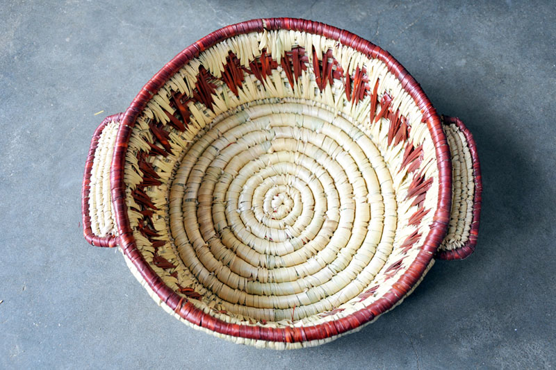 The Moonj coiled grass products are ideal to serve daily life purposes. These natural products can be used as containers, food storage devices and wall decorators. The products are very simple, attractive and eco-friendly. The range of products includes Tipara-vanity case which is used to store rotis, Goli-round basket and containers of different sizes. Recent innovative products include book shelf, ear rings, fruit basket and hand purse. Among all products Tipara-Kadai is the traditional one. The Moonj craft also has a traditional significance as the final products are given as gifts for women in ritual functions and weddings.