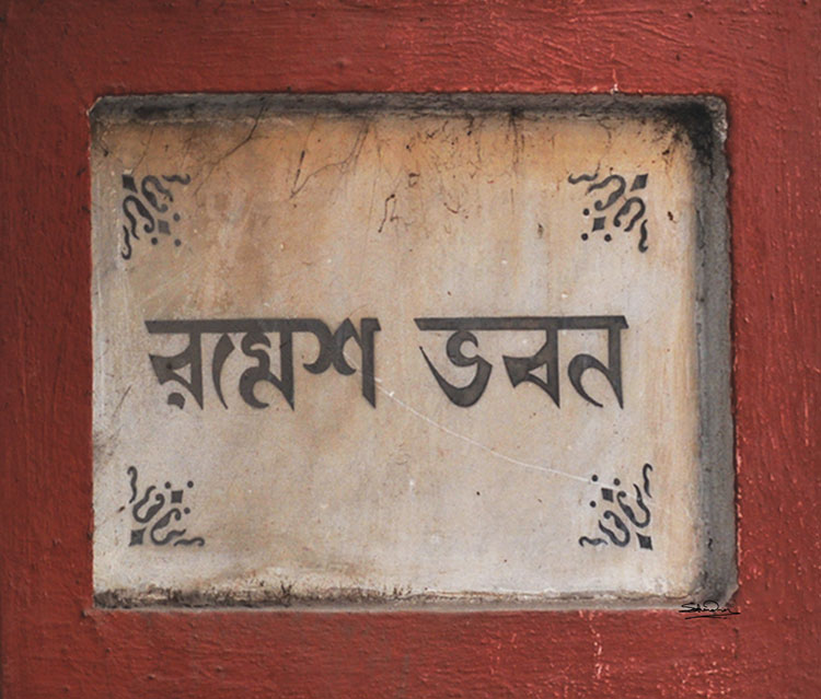 ‘RAMESH BHAVAN’ is one of the surviving wall art. It is the signage of a house, nearly a century old in Kolkata (photo on the previous page). During that time a numbering system for houses did not exist. Most house owners used this type of signage developed on a stone surface, for identification of their house. The glyph of typography is taken from religious forms. It is a very sharp and low contrast typeface.