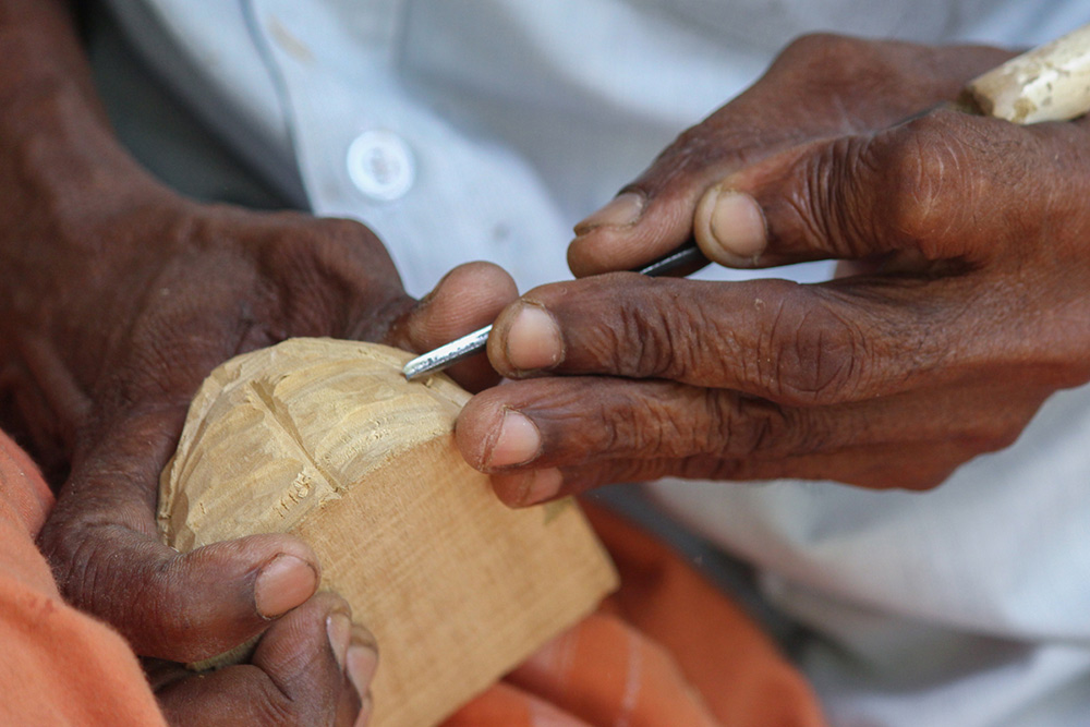 Cherthala is further divided into three block panchayats. They are Pattanakad, Thycattuserry and Kanzhikuzhy. Pattanakkad a panchayat, which comes under the constituency of Aroor assembly, is a charming village. It is located on the National Highway 47, about 7km northwest of Cherthala in Alleppey district. Kochi is located towards the northern side of Pattanakkad of about 22km. This village is very famous for an ancient Mahadeva temple dedicated to Lord Shiva. The temple is situated near to the panjayathu bus stop on the Ernakulum Cherthalai route. As it is a self-originated Lord Shiva, it is the main deity of the temple. It is also believed that the temple is one of the 108 Shiva temples built by Hindu warrior saint Parashurama. Lord Ganesha, Lord Subramanya, Naga, Sastha, Bhagavathy and Rakshas are the sub-deities installed and worshipped at this temple. Eight days of festival celebration is held at this temple every year from the next day of the Maha Shivrathri, which is very famous in and around the locality. This village consists of a school called ‘Pattanakkad Public School’, the most recognized educational institution in the district. Few more interesting spots found around this place are Vayalar and Mahakshethram. The village is facilitated with nearby Shertalai railway station and Turavur railway station. It is also very closely situated near Cochin International Airport. The major livelihood of people in this place is coir making, boat making and woodcarving. Here the large number of laborers works in coir industry. Next come the skilled artisans who work on woodcarvings. One among such skilled artist is Mr.Gopi. He has an experience of about 47years in this industry. Initially he was assisting the experienced sculptors in polishing process at the age of 13. From then he was into doll making and polishing jobs. Since then he was inspired to work on idols making. Approximately 30 years he has worked in Mysuru at Bandipur and has worked for 2-3years at a Church in Bengaluru. From past 5 years due to age factor he is working at his residence and also he is been working on wooden idols. Wood required for his order work is bought in the form of wooden logs from sawmill and then cut accordingly. It takes a day for the artisan to prepare two wooden idols of four inches. These were earlier supplied to Cauvery Craft Emporium of Karnataka. But now the present orders are supplied to the Handicraft’s showrooms located at Shivajinagar of Bengaluru. These wooden idols are also supplied to Sagara, Shivamogga, Cochin, Munnar and some of the other tourist places. It is sold in Alleppey at his residence as well.